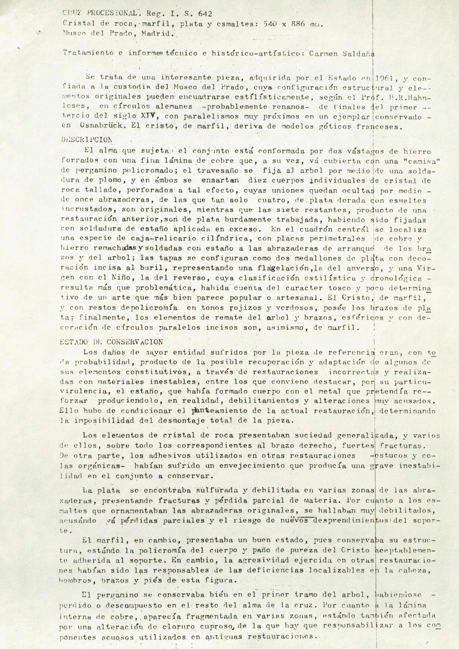Restauración de una cruz procesional de plata y cristal de roca del Museo Nacional del Prado (Madrid)