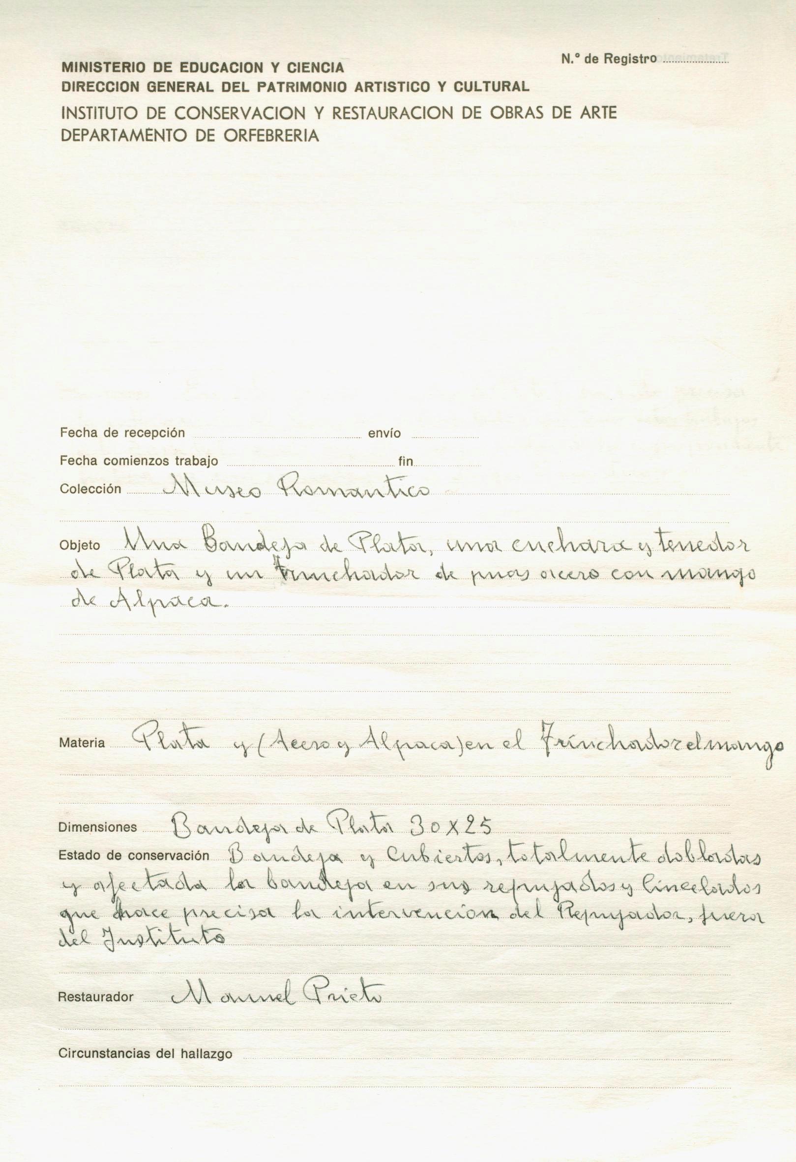 Restauración de piezas de cubertería y una bandeja procedentes del Museo Romántico (Madrid)