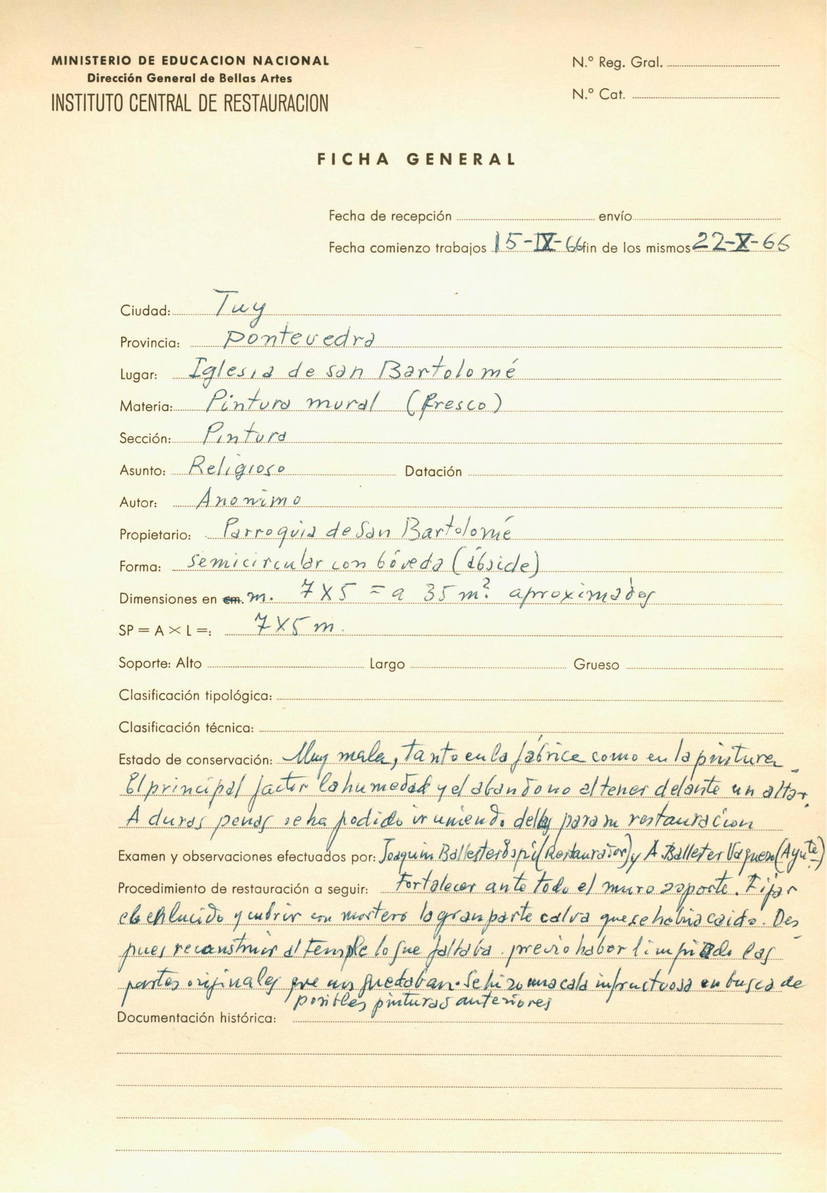 Restauración de pinturas murales procedentes de la Iglesia de San Bartolomé en Tui (Pontevedra)
