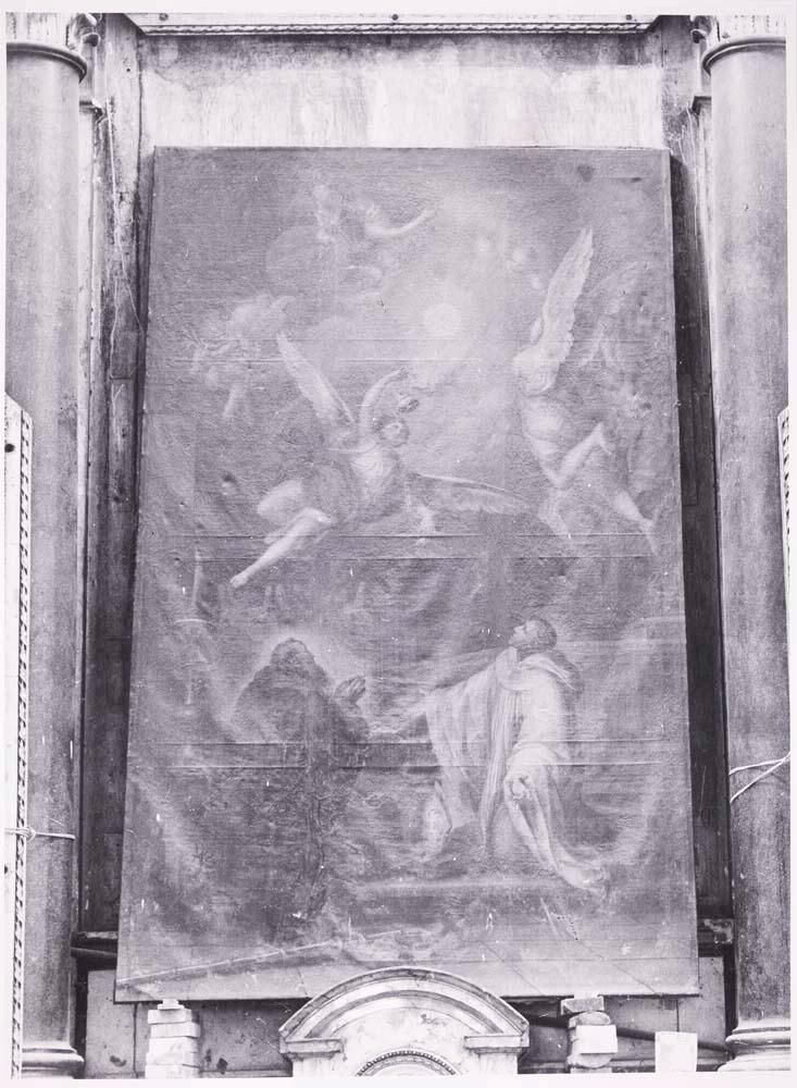 Restauración in situ del cuadro del siglo XVIII "San Bernardo y San Benito adorando el Santísimo Sacramento", de Gregorio Ferro, procedente de la Iglesia Sacramento de Madrid