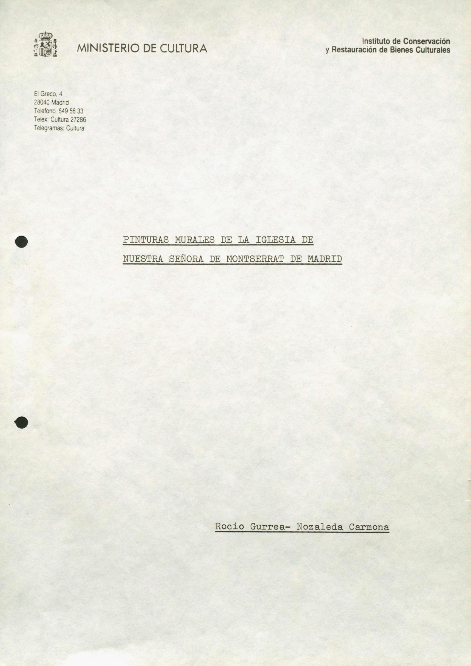 Informes de visita sobre la restauración de las pinturas murales procedentes de las bóvedas de la Iglesia de Montserrat de Madrid