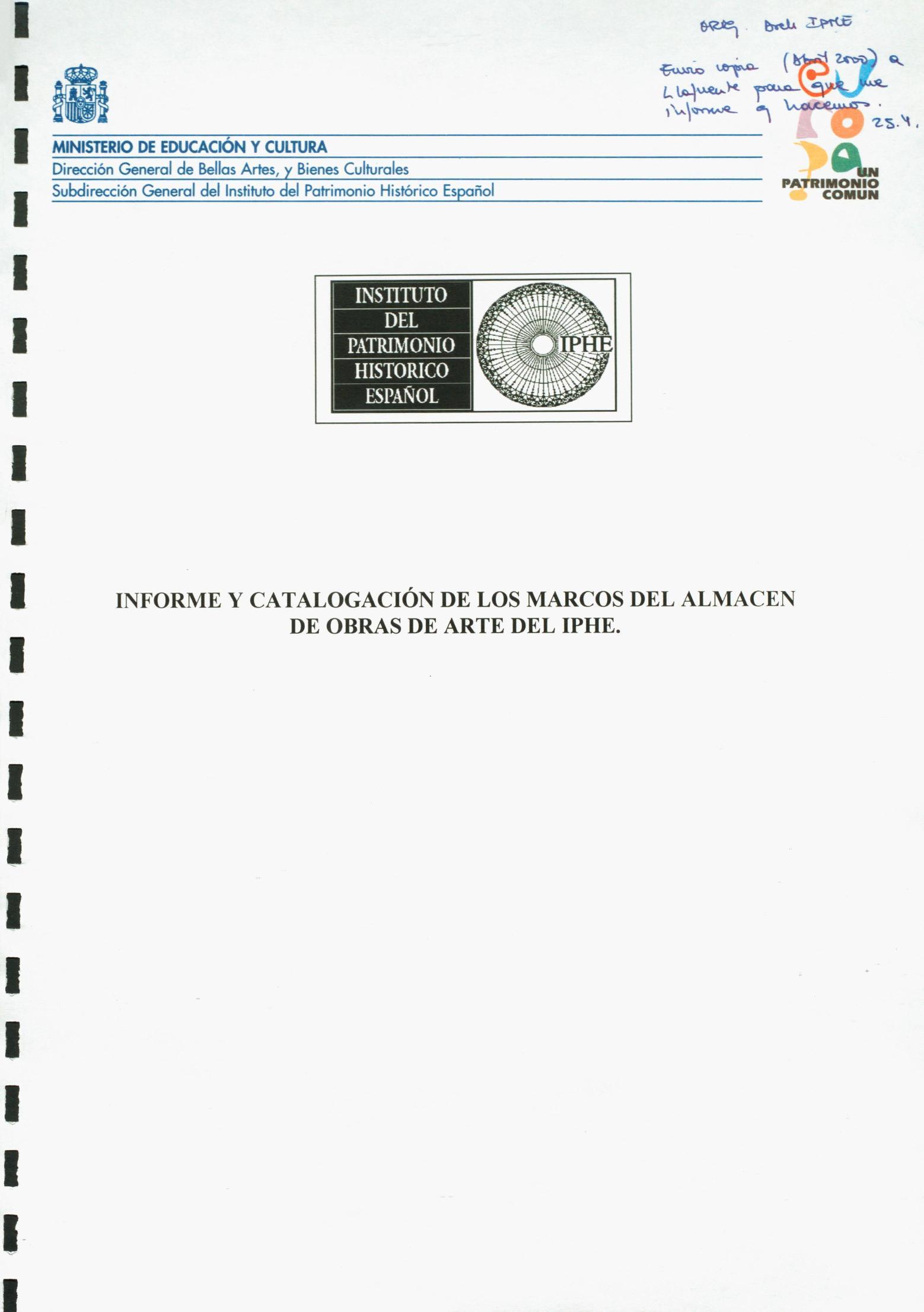 Informe y catalogación de los marcos ubicados en el almacén del Instituto del Patrimonio Histórico Español (Madrid)