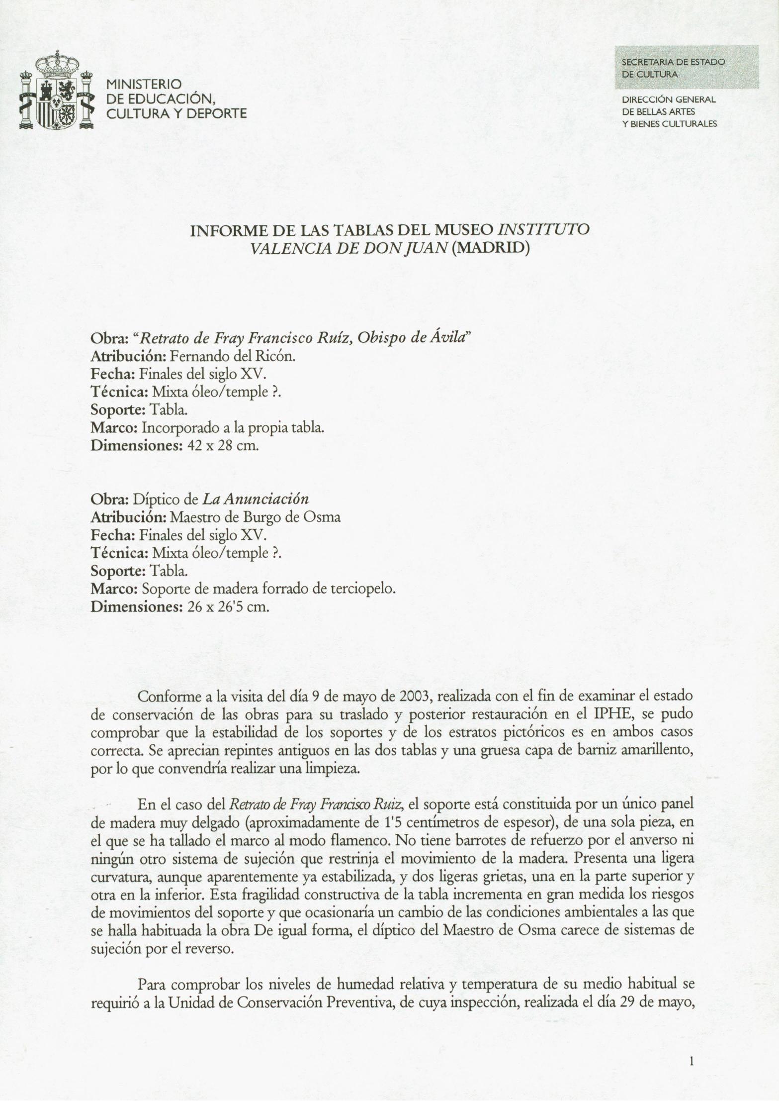 Restauración del "Retrato del Obispo de Ávila Fray Francisco Ruiz", atribuido a Fernando del Rincón, procedente del Instituto Valencia de Don Juan de Madrid