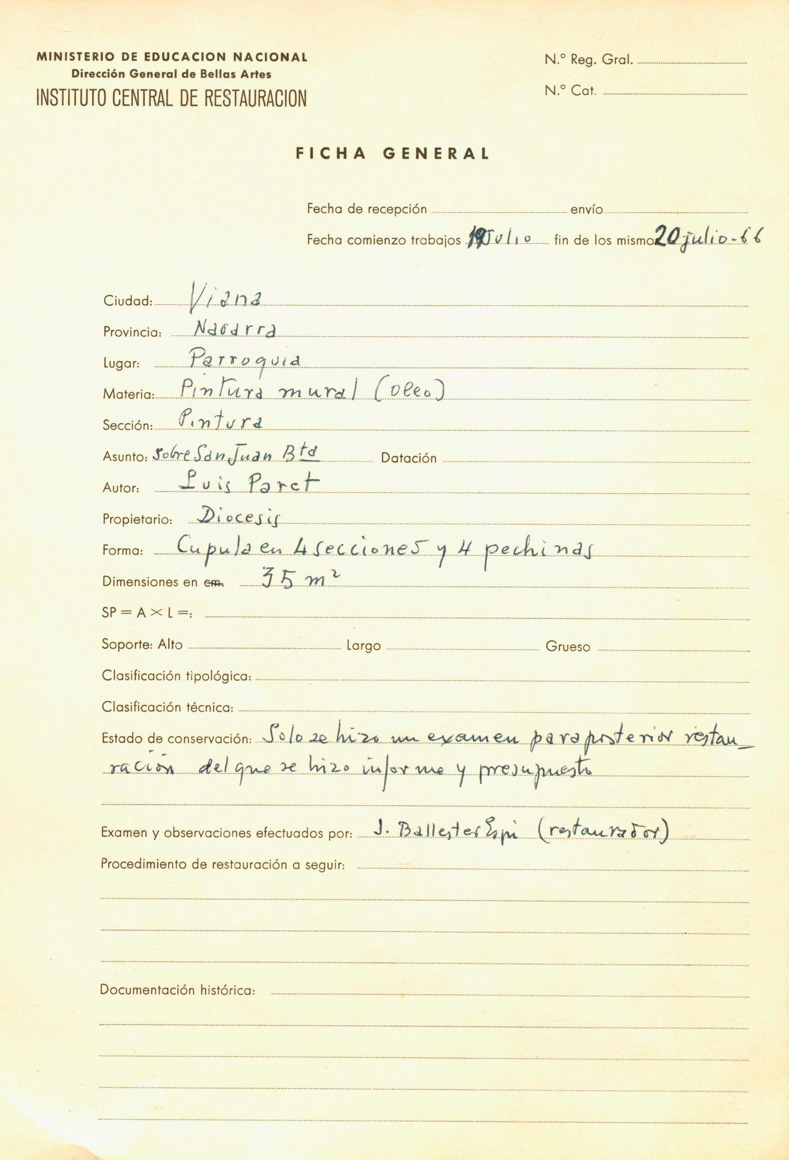 Restauración de las pinturas murales de la cúpula y las pechinas, de Luis Paret, procedentes de la Iglesia de Santa María de la Asunción Viana (Navarra)
