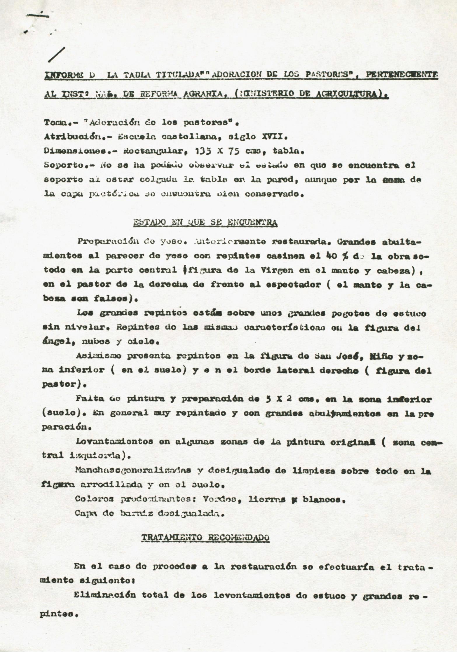 Informes de conservación de dos tablas al óleo del siglo XVIII, procedentes del retablo de la Capilla del Cortijo Foncastín de Valladolid, propiedad del Instituto Nacional de Reforma y Desarrollo Agrario del Ministerio de Cultura, Pesca y Alimentación (Madrid)