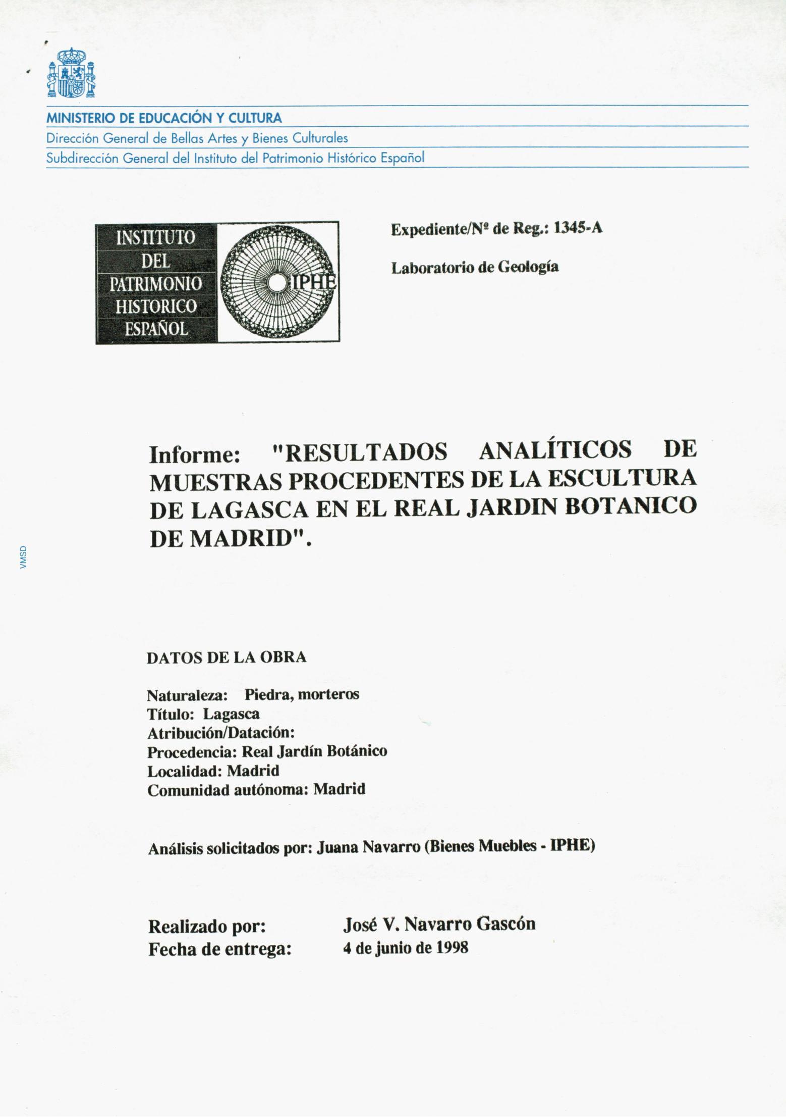 Informe sobre el análisis de muestras de la escultura de Mariano Lagasca ubicada en el Real Jardín Botánico (Madrid)