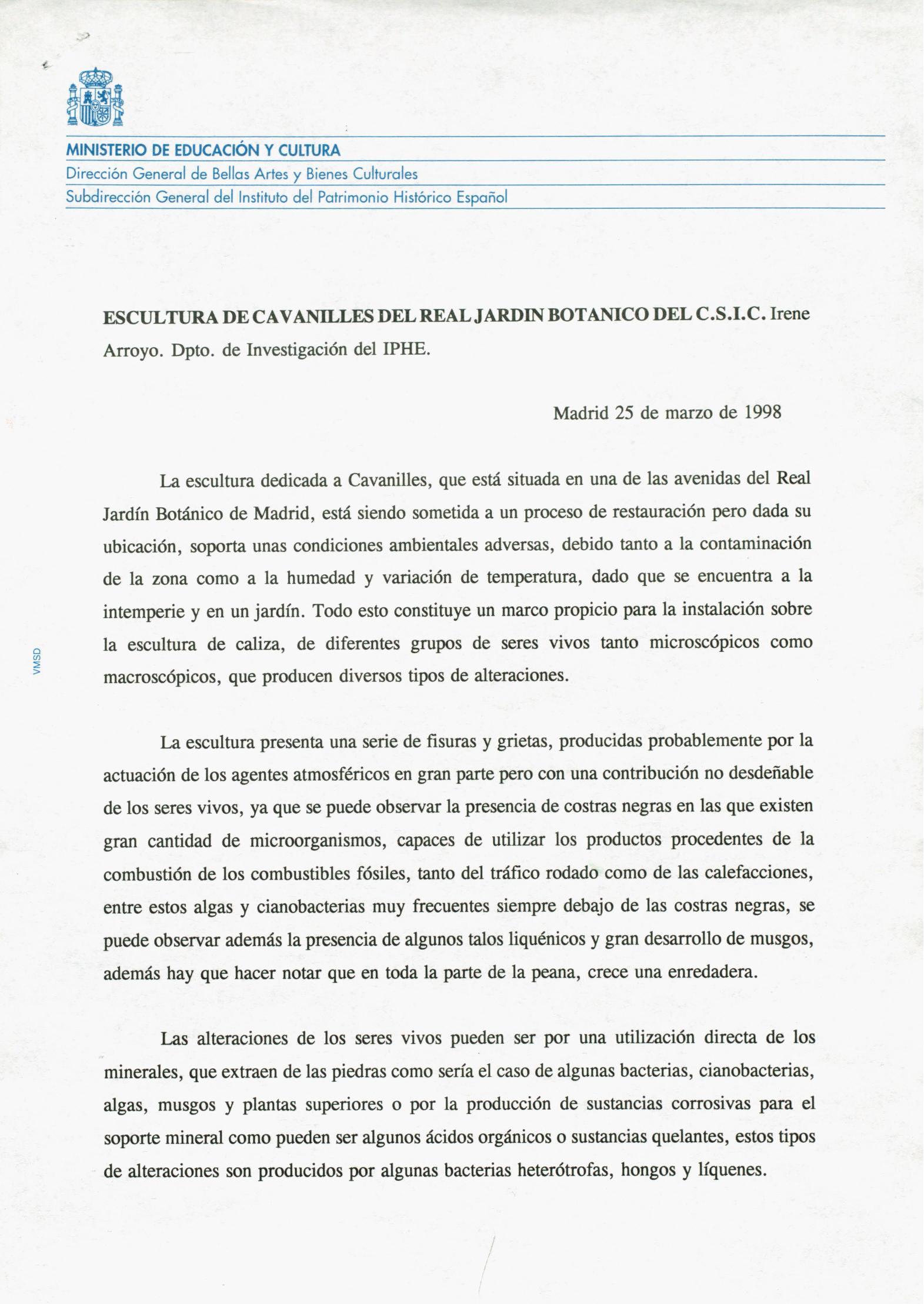 Informe de conservación de una estatua de Antonio José de Cavanilles, procedente del Real Jardín Botánico (Madrid)