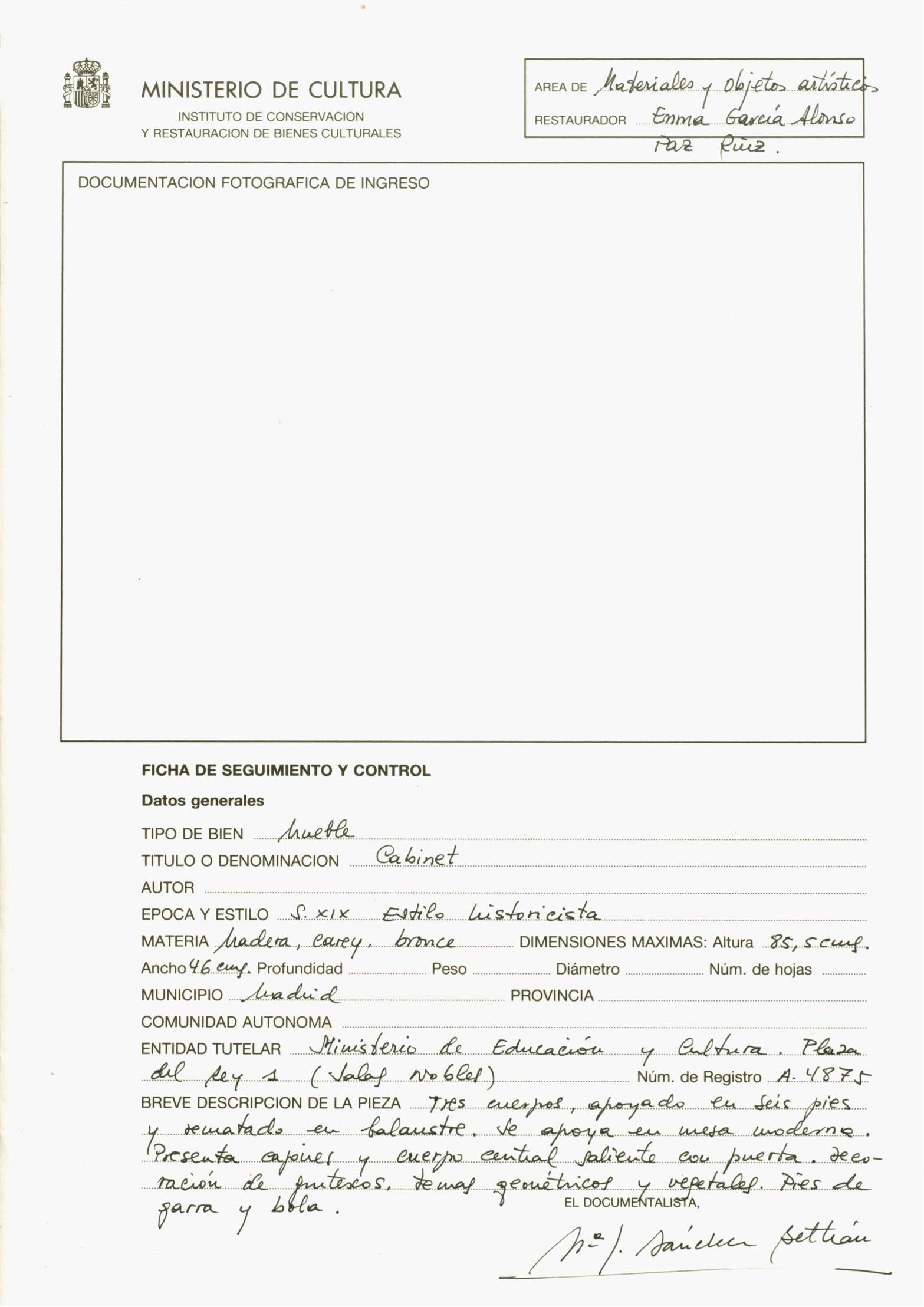 García Alonso, Emma / Restaurador ;