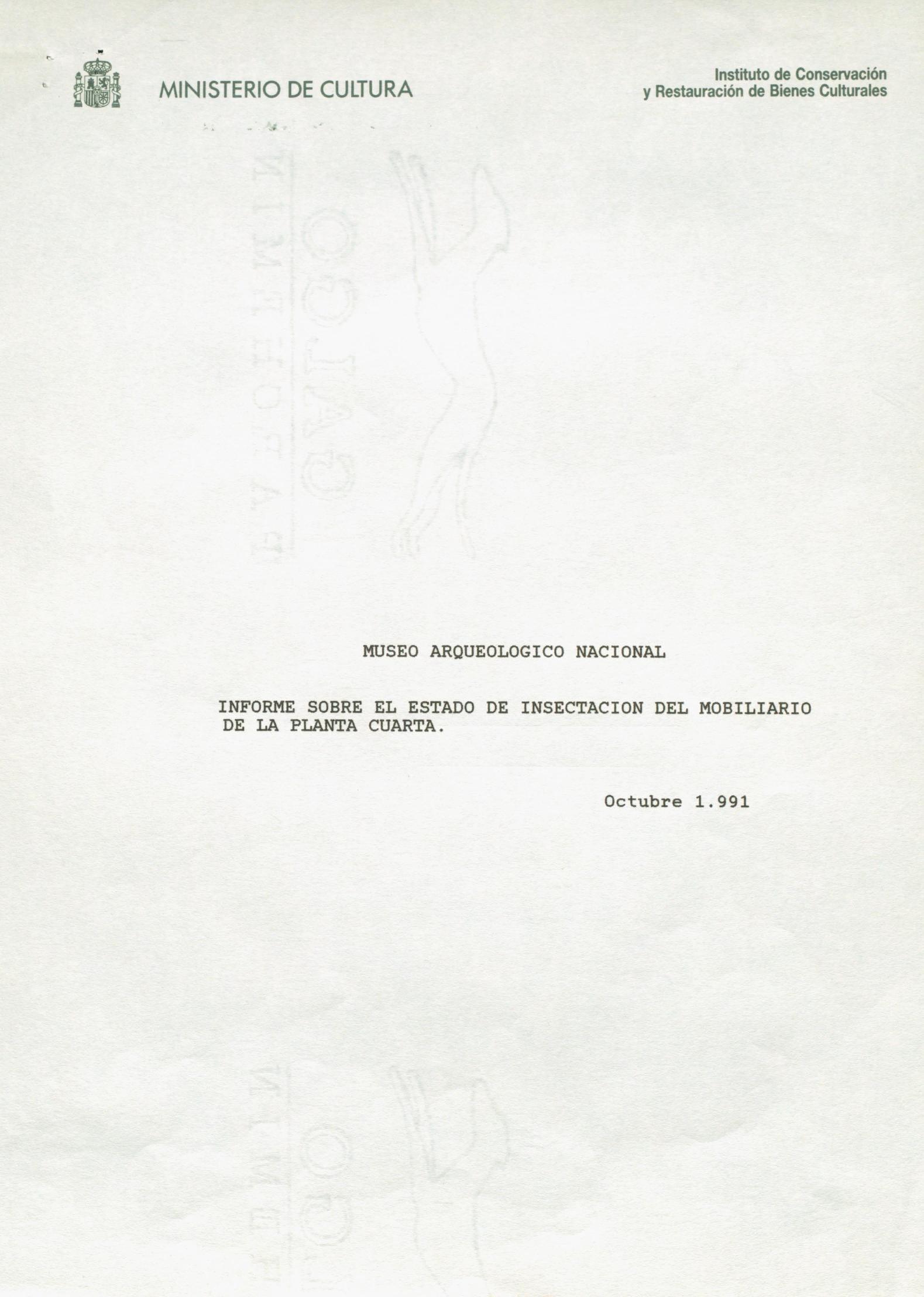 Informe sobre el estado de insectación del mobiliario de la cuarta planta del Museo Arqueológico Nacional (Madrid)