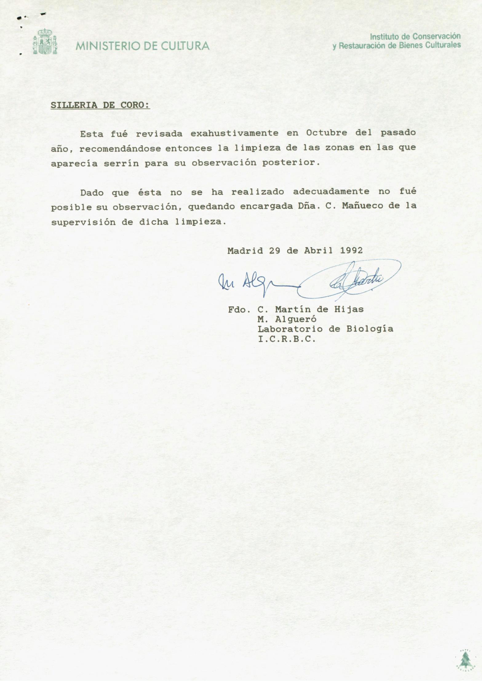 Informe de laboratorio de biología de cuatro pianos, un órgano y una sillería de coro del Museo Arqueológico Nacional (Madrid)