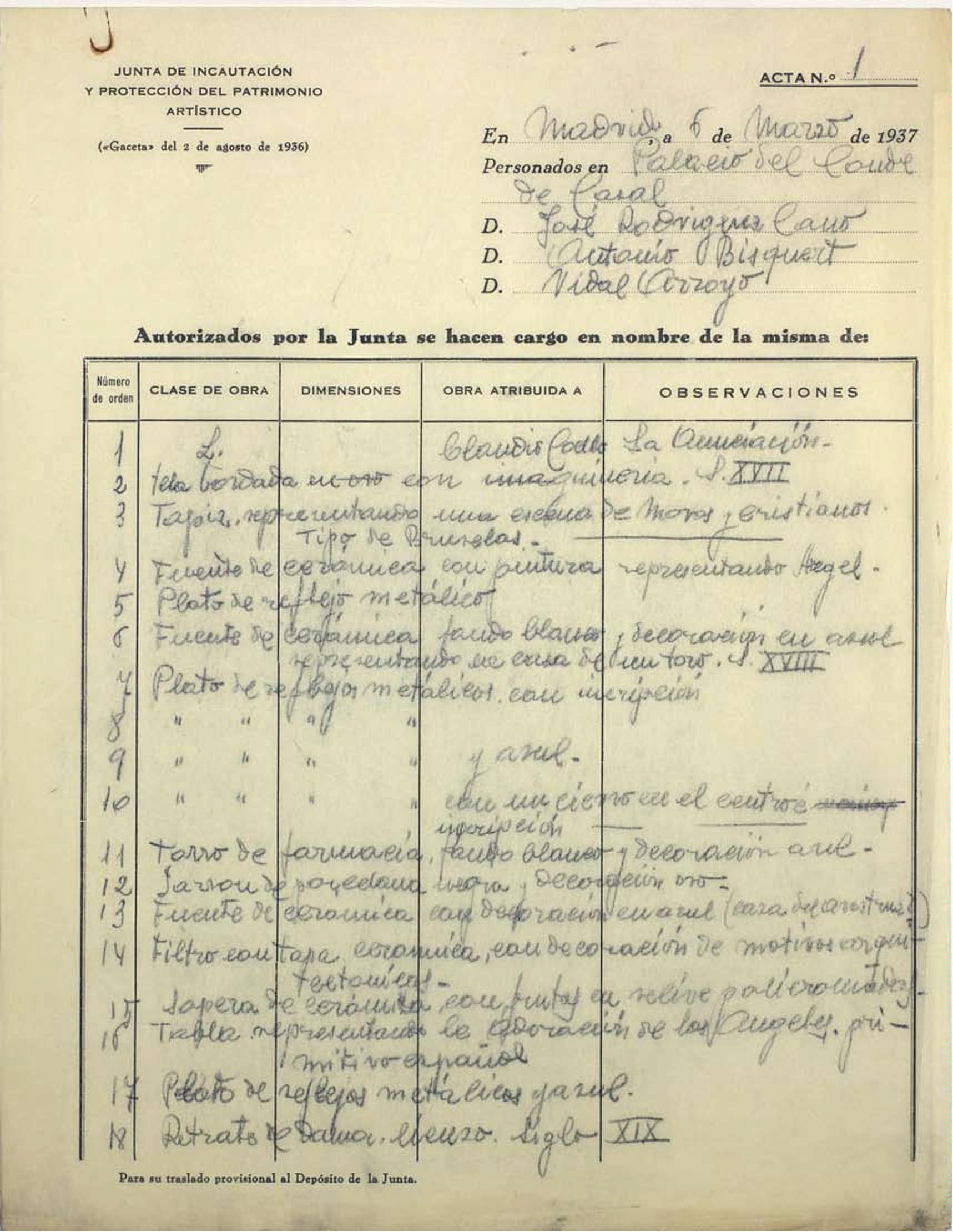 Acta de incautación del Palacio de Conde de Casal