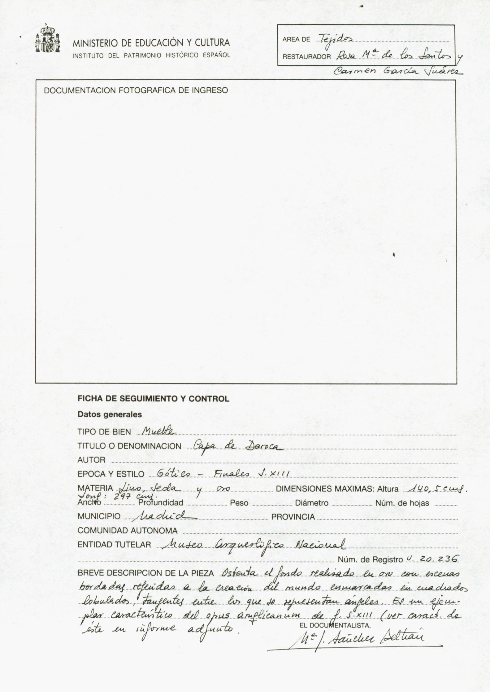 Restauración de la "Capa de Daroca", del siglo XIII, procedente del Museo Arqueológico Nacional (Madrid)