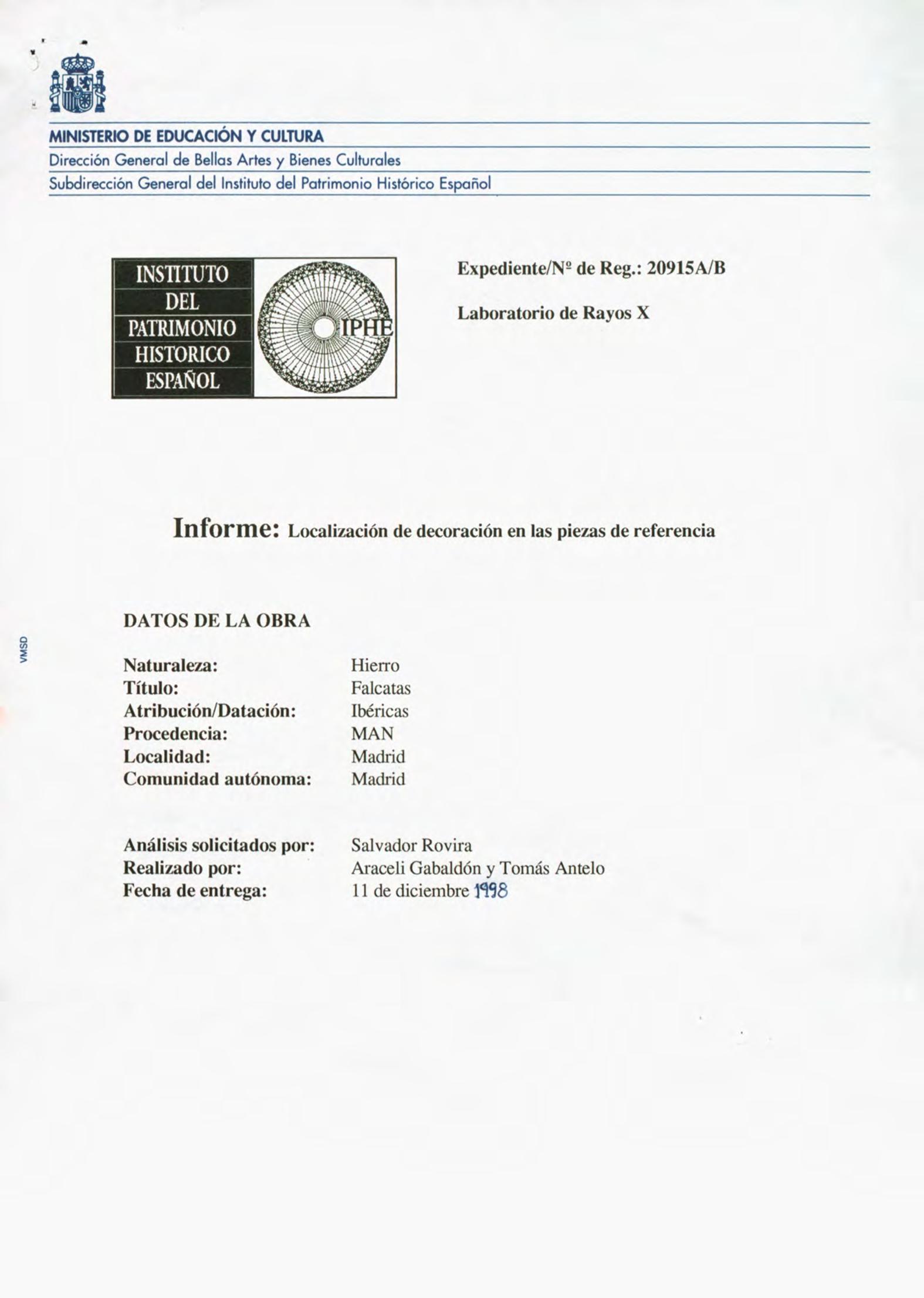 Informe de laboratorio sobre dos falcatas con posible decoración, procedentes del Museo Arqueológico Nacional (Madrid)