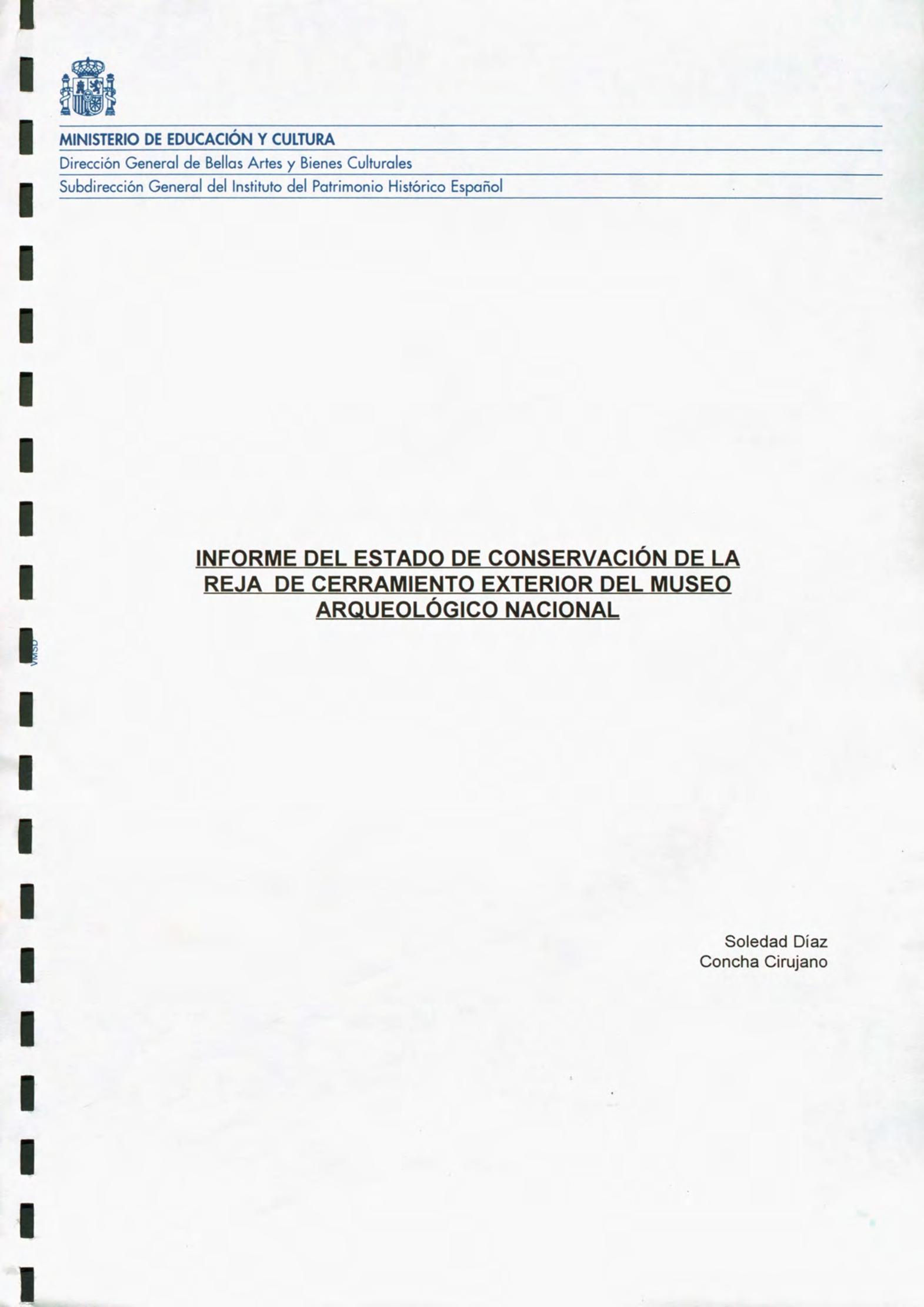 Informe de conservación de la reja de cerramiento exterior procedente del Museo Arqueológico Nacional (Madrid)
