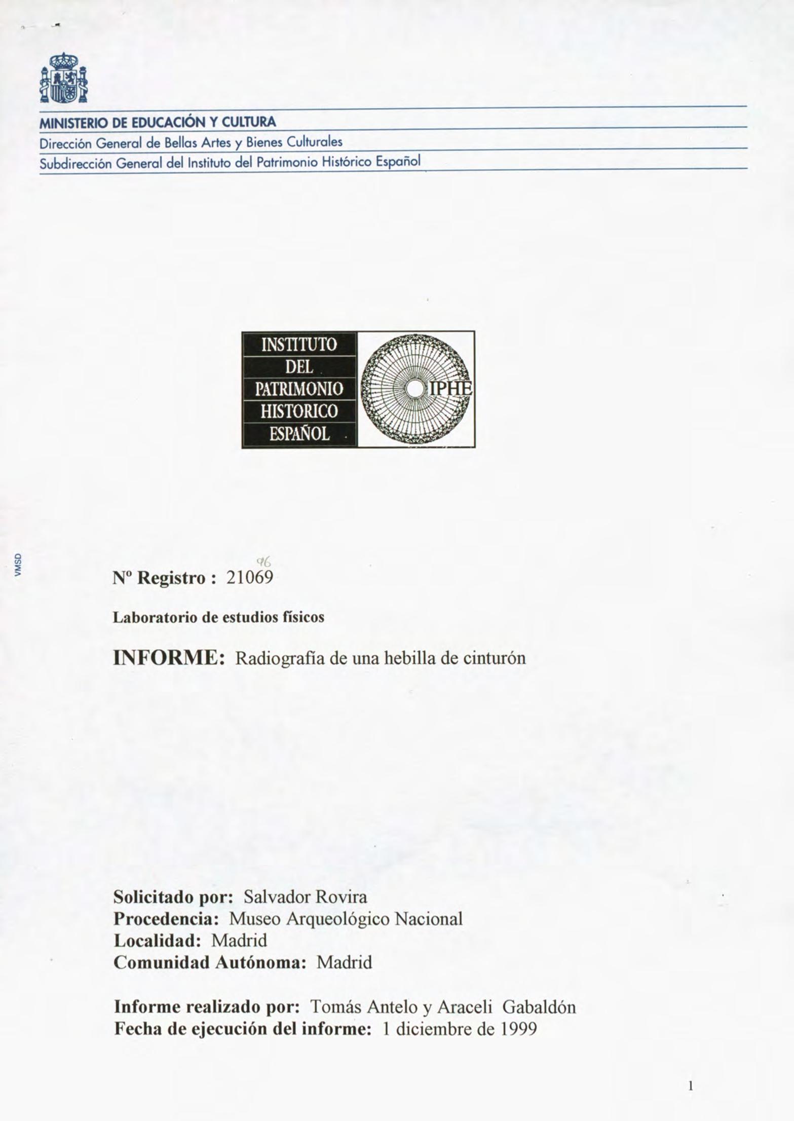 Informe sobre el análisis radiográfico de una hebilla de cinturón visigótico procedente del Museo Arqueológico Nacional (Madrid)