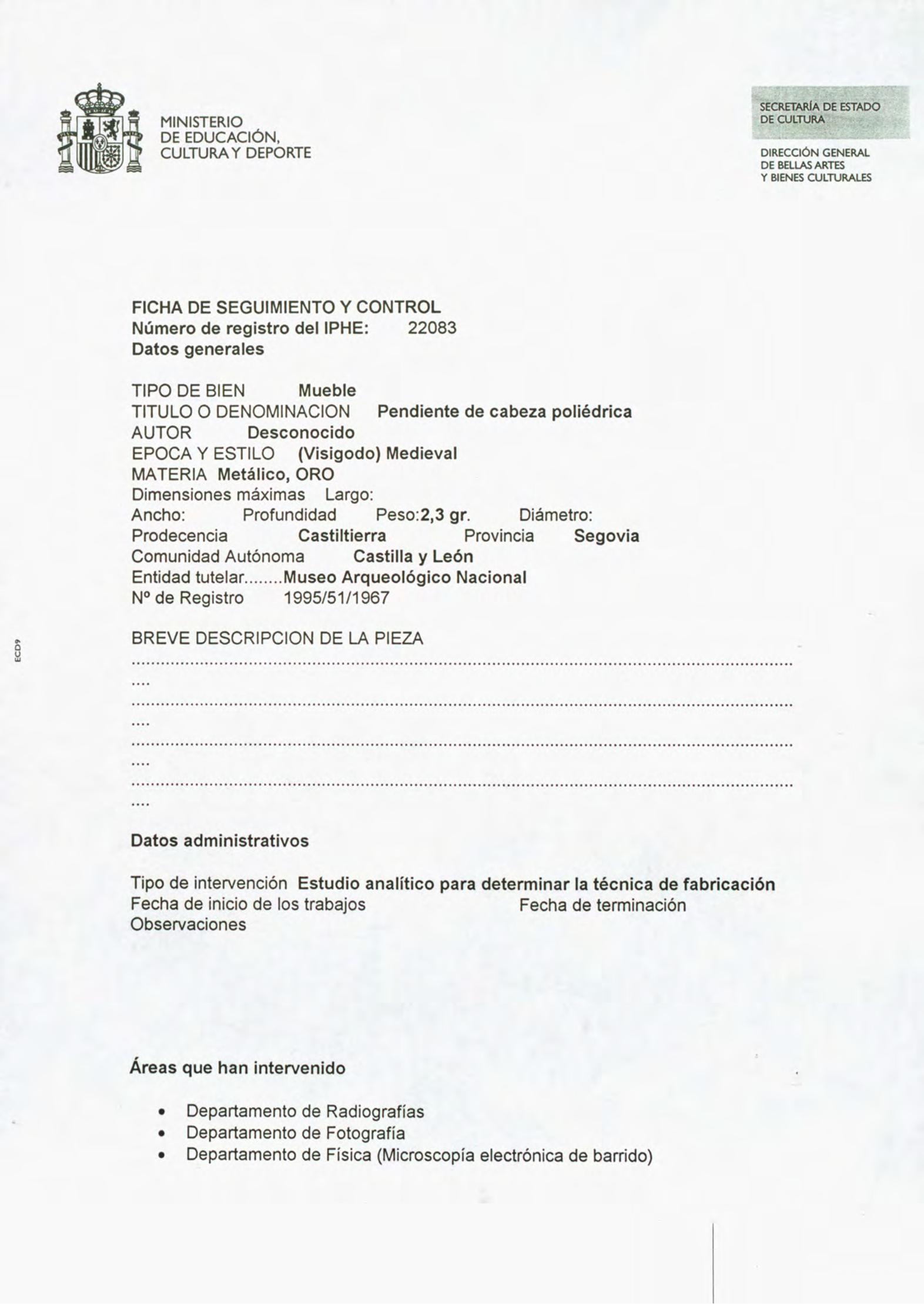 Informes de laboratorio y conservación de piezas arqueológicas procedentes del Museo Arqueológico Nacional (Madrid)