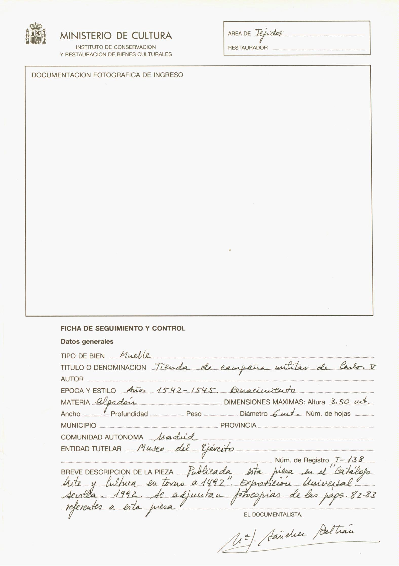 Restauración de la tienda de Carlos V procedente del Museo del Ejército (Madrid)