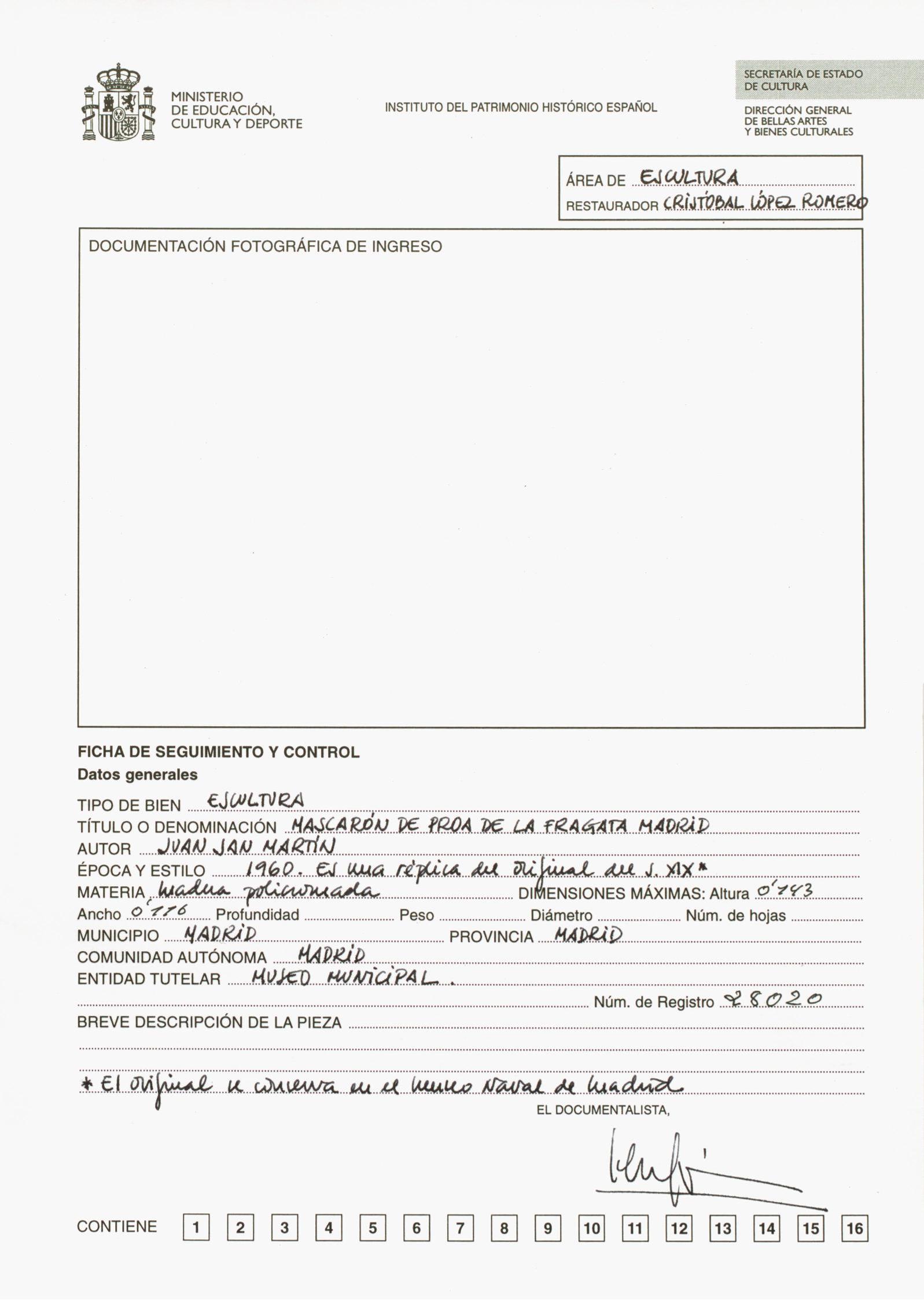 Restauración del mascarón de proa con el escudo de la villa de la fragata "Madrid", procedente del Museo Municipal de Madrid
