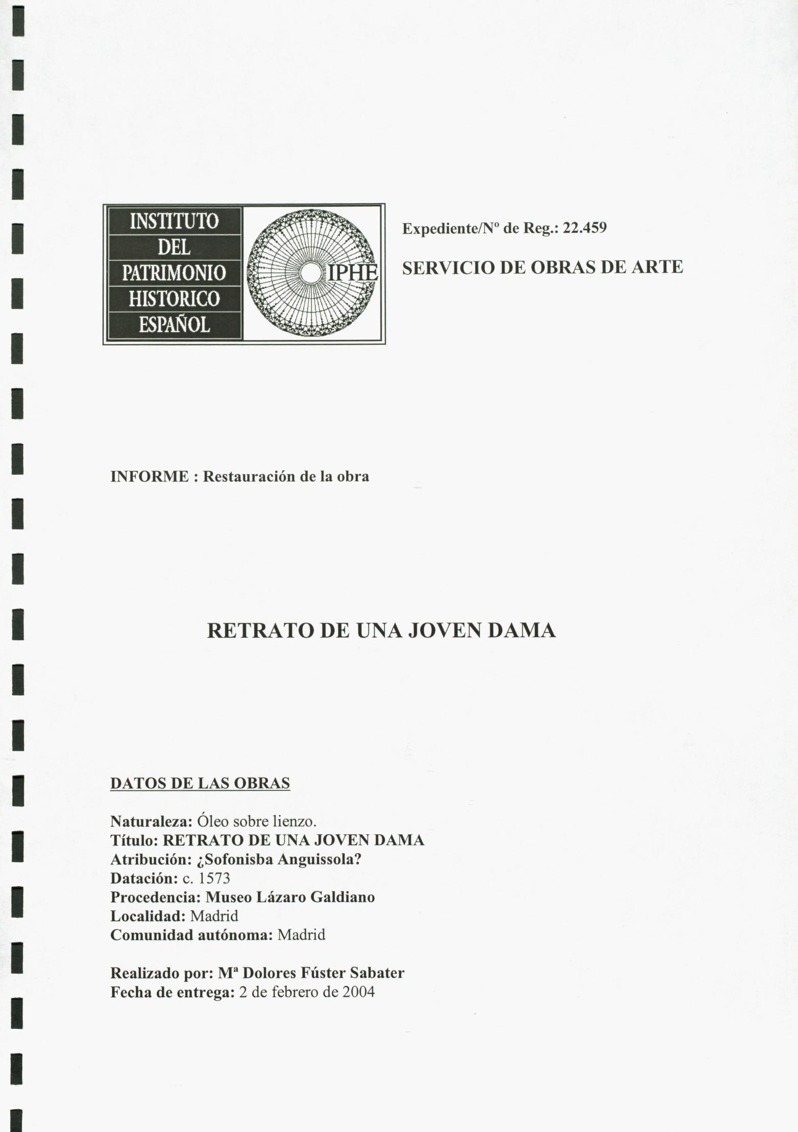 Restauración del óleo "retrato de una joven dama", del siglo XVI y posible atribución a Sofonisba Anguissola, procedente del Museo Lázaro Galdiano (Madrid)