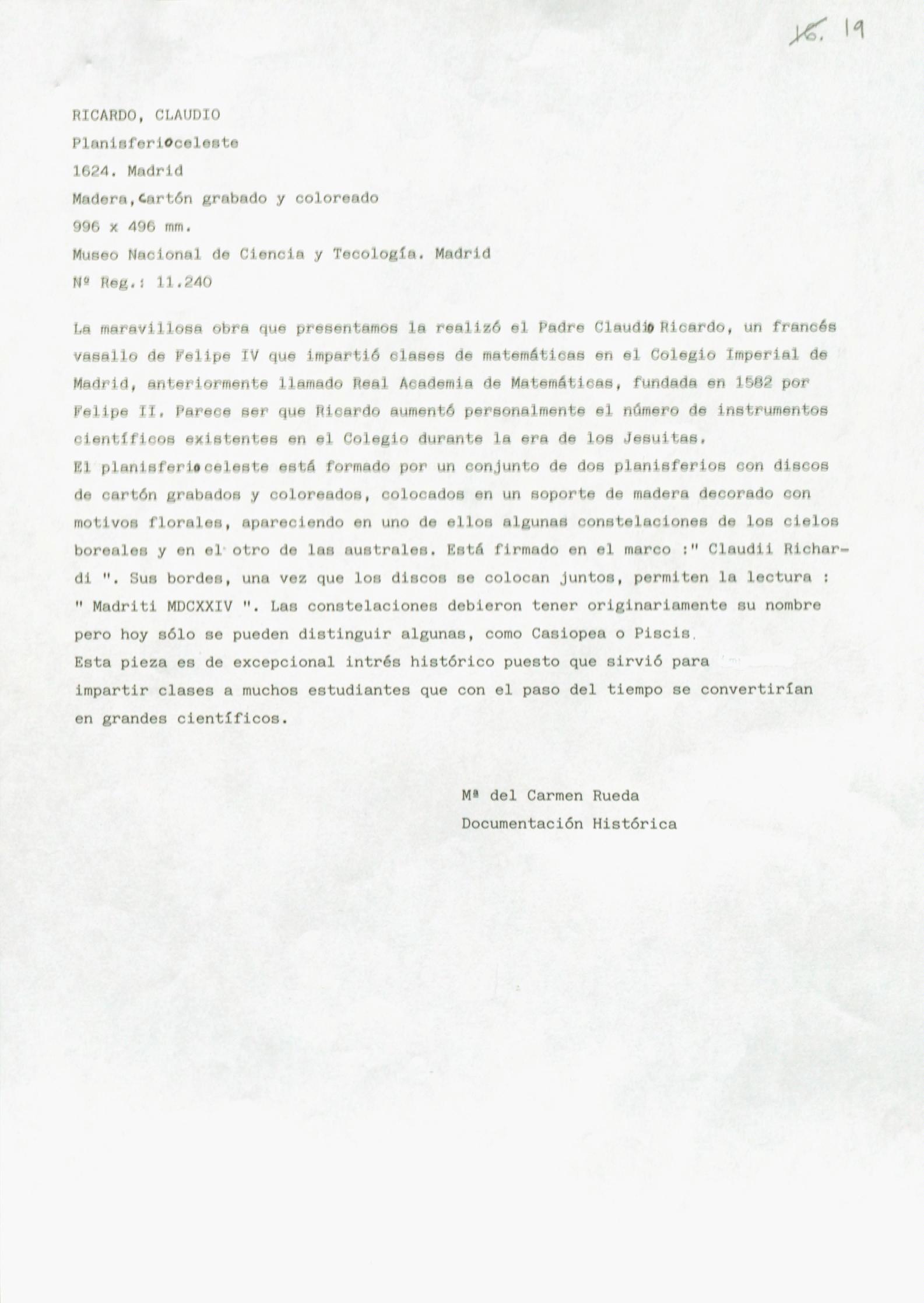 Restauración de un planisferio celeste del Museo Nacional de Ciencia y Tecnología (Madrid)