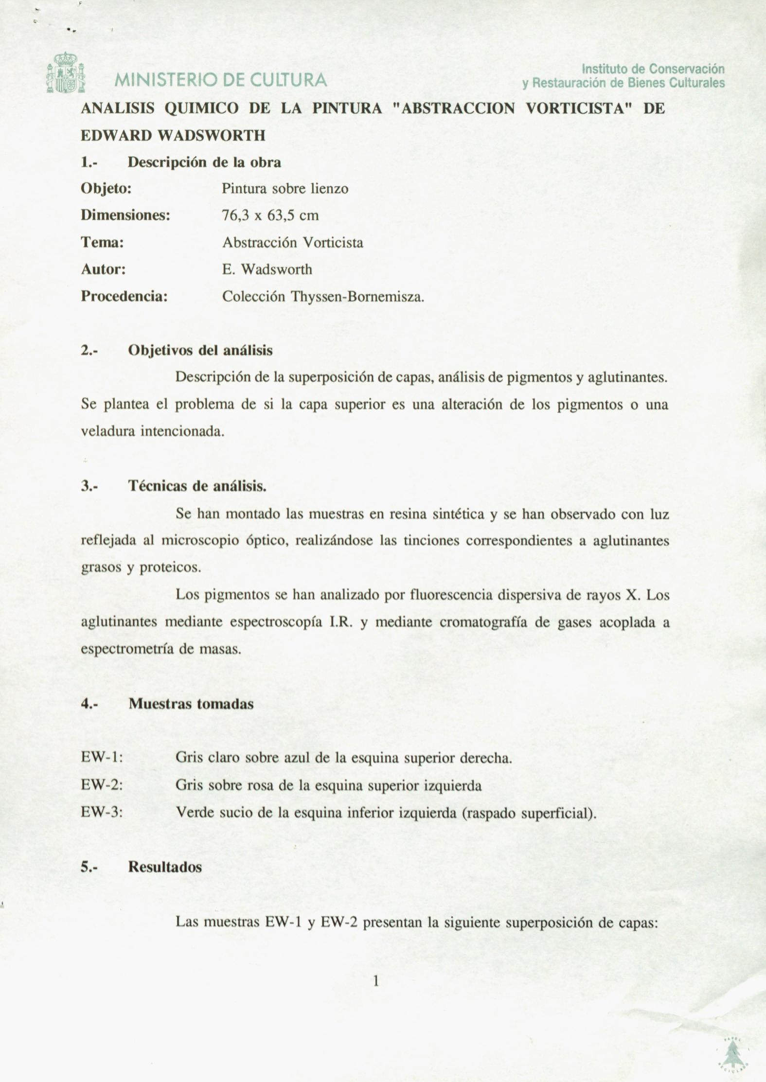 Informe sobre el análisis químico del lienzo "Abstracción Vorticista", de Edward Wadsworth, procedente del Museo Thyssen-Bornemisza (Madrid)