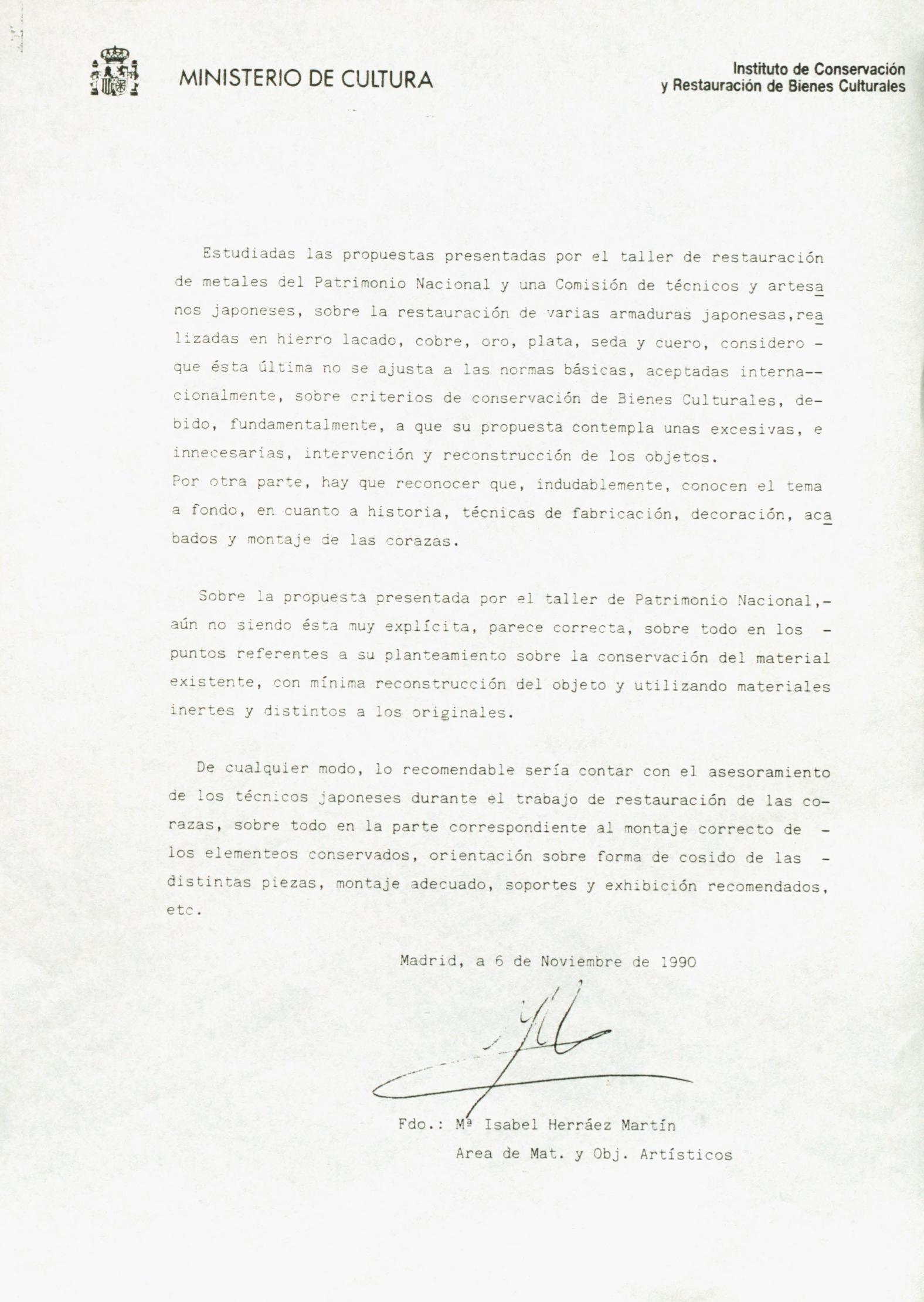 Informe sobre las propuestas de restauración de una colección de armaduras japonesas, de Toyotomi Hideyoshi, del Palacio Real (Madrid)
