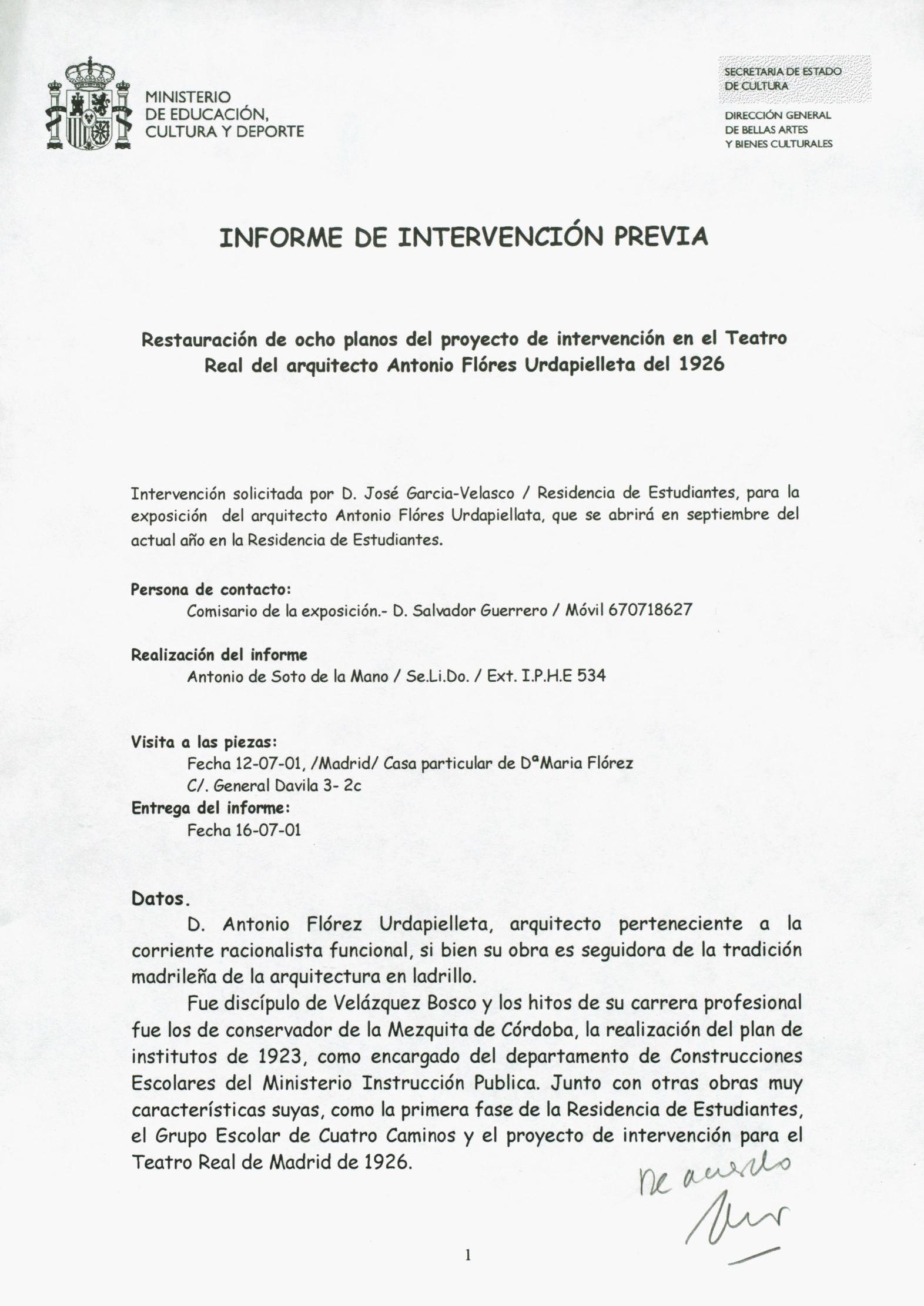 Restauración de ocho planos del proyecto de intervención del arquitecto Antonio Flórez en el Teatro Real, procedentes de la Residencia de Estudiantes (Madrid)