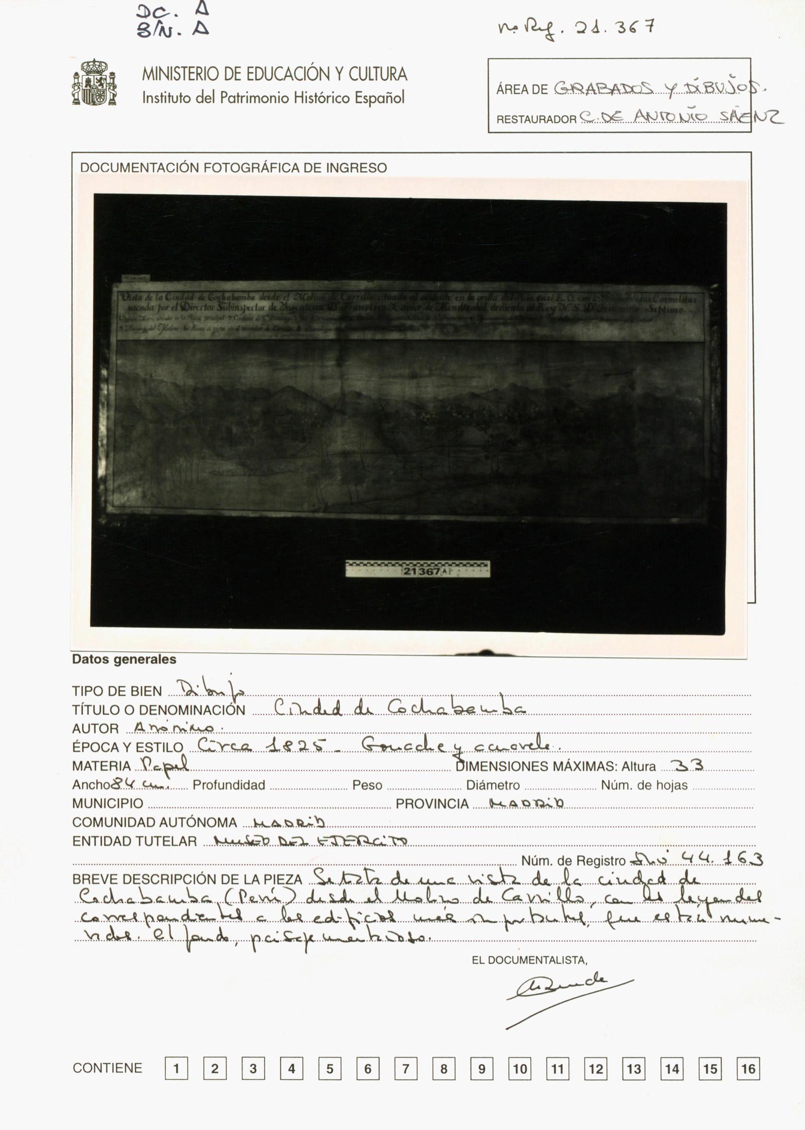 Restauración de un dibujo anónimo de la "Ciudad de Cochabamba", procedente del Museo del Ejército (Madrid)