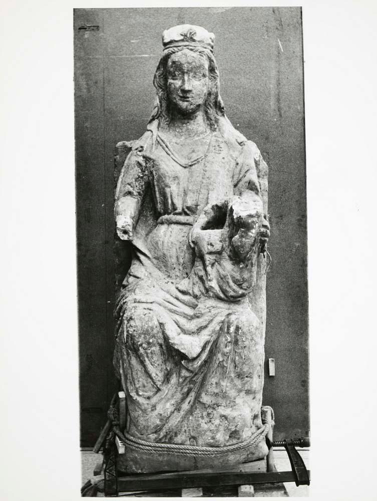 Informe de conservación de una escultura en piedra de la Virgen con el Niño, procedente de la Dirección General de Bellas Artes (Madrid)