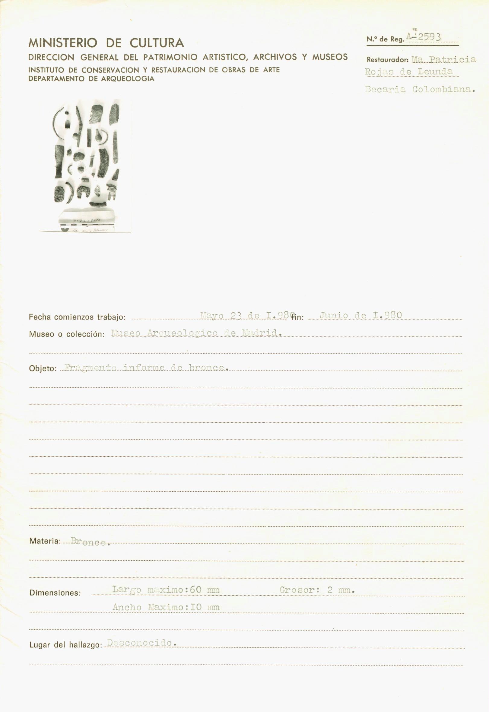 Restauración de un fragmento de bronce, procedente del Museo Arqueológico Nacional (Madrid)