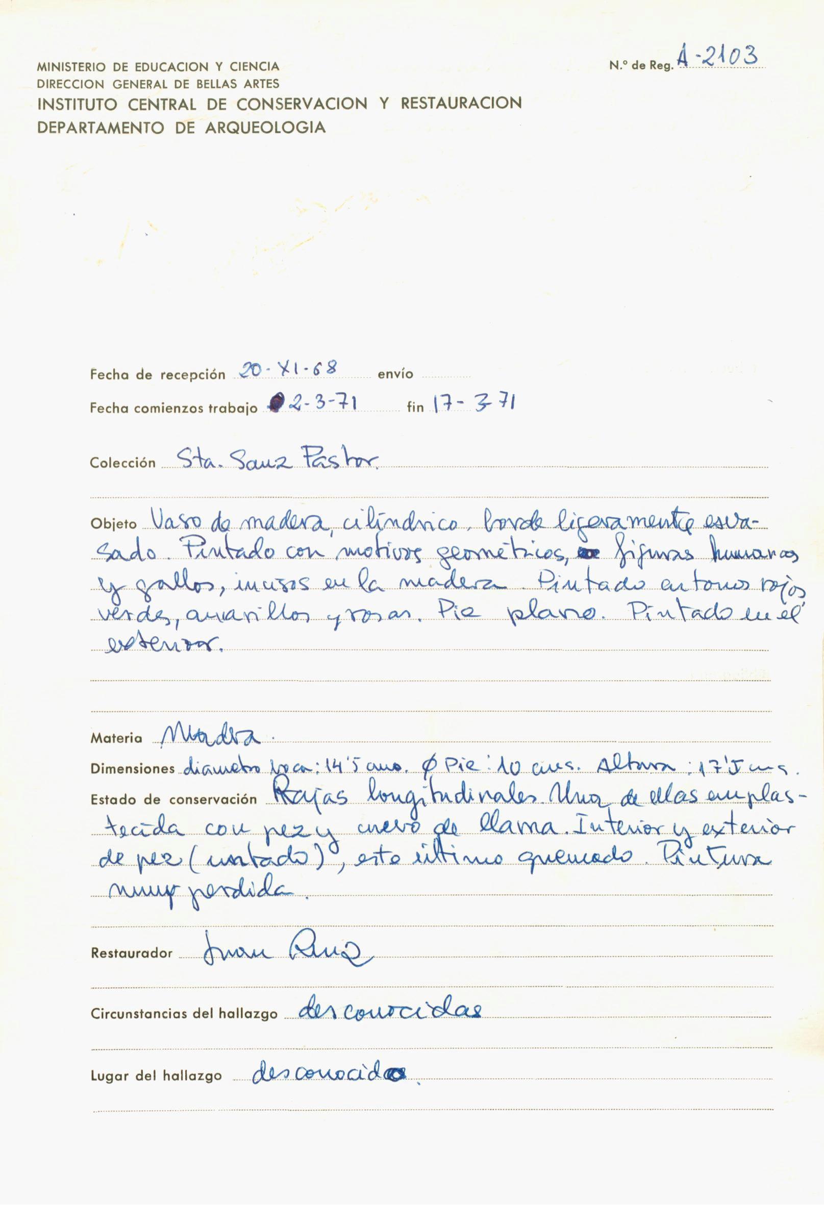 Restauración de un quero o vaso ceremonial realizado en madera, procedente del Museo Cerralbo (Madrid)