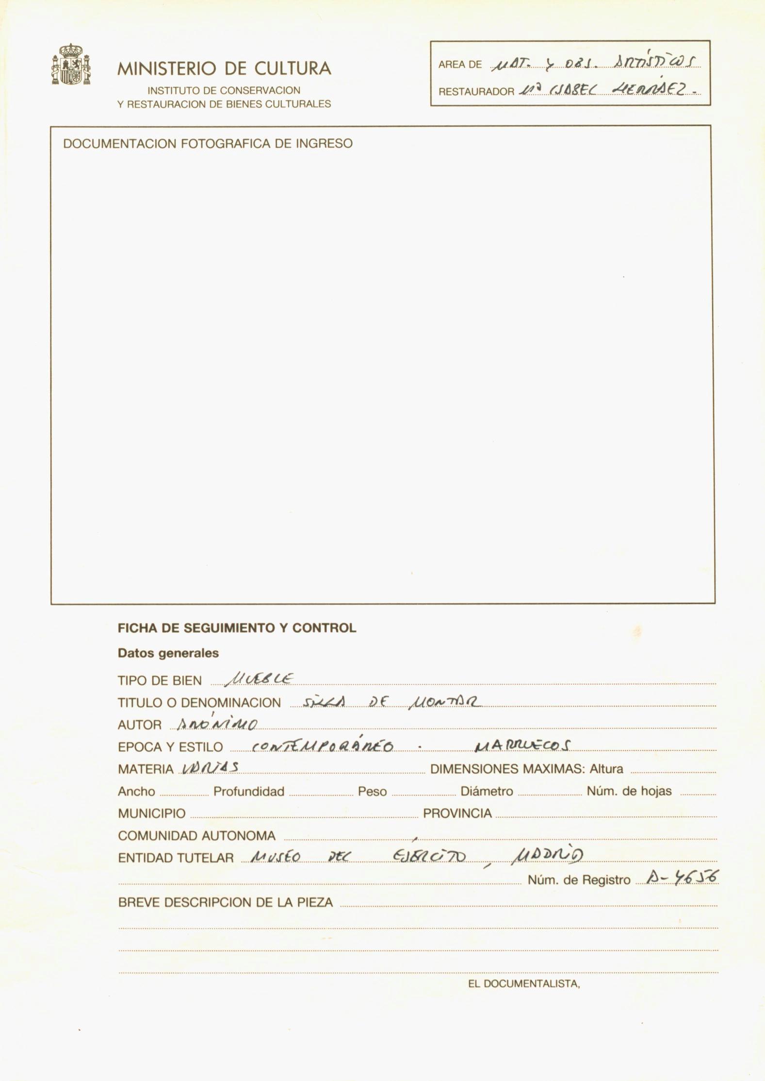 Restauración de una silla de montar de Marruecos, procedente del Museo del Ejército (Madrid)