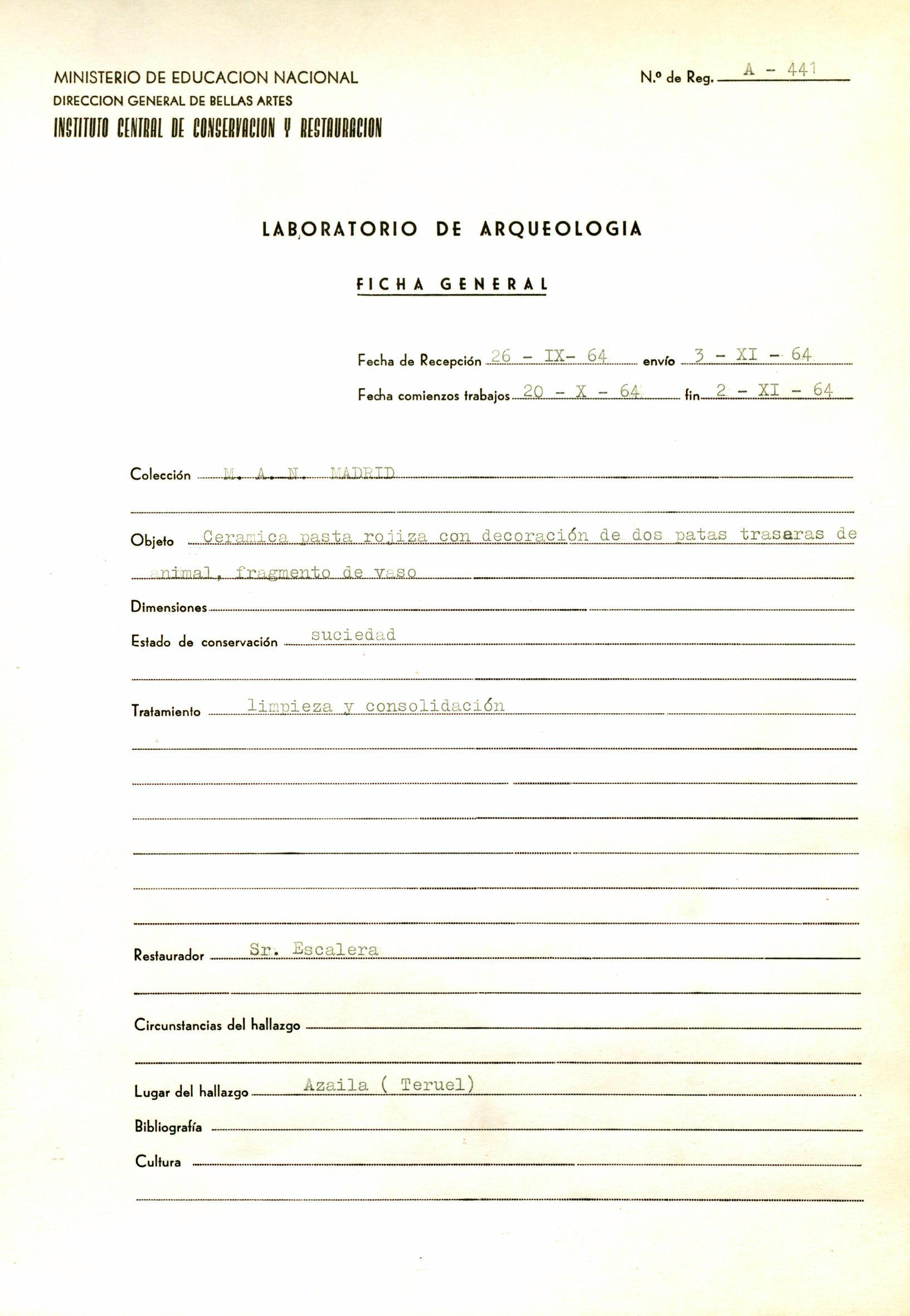 Restauración de piezas arqueológicas del yacimiento de Azaila (Teruel), procedentes del Museo Arqueológico Nacional (Madrid)