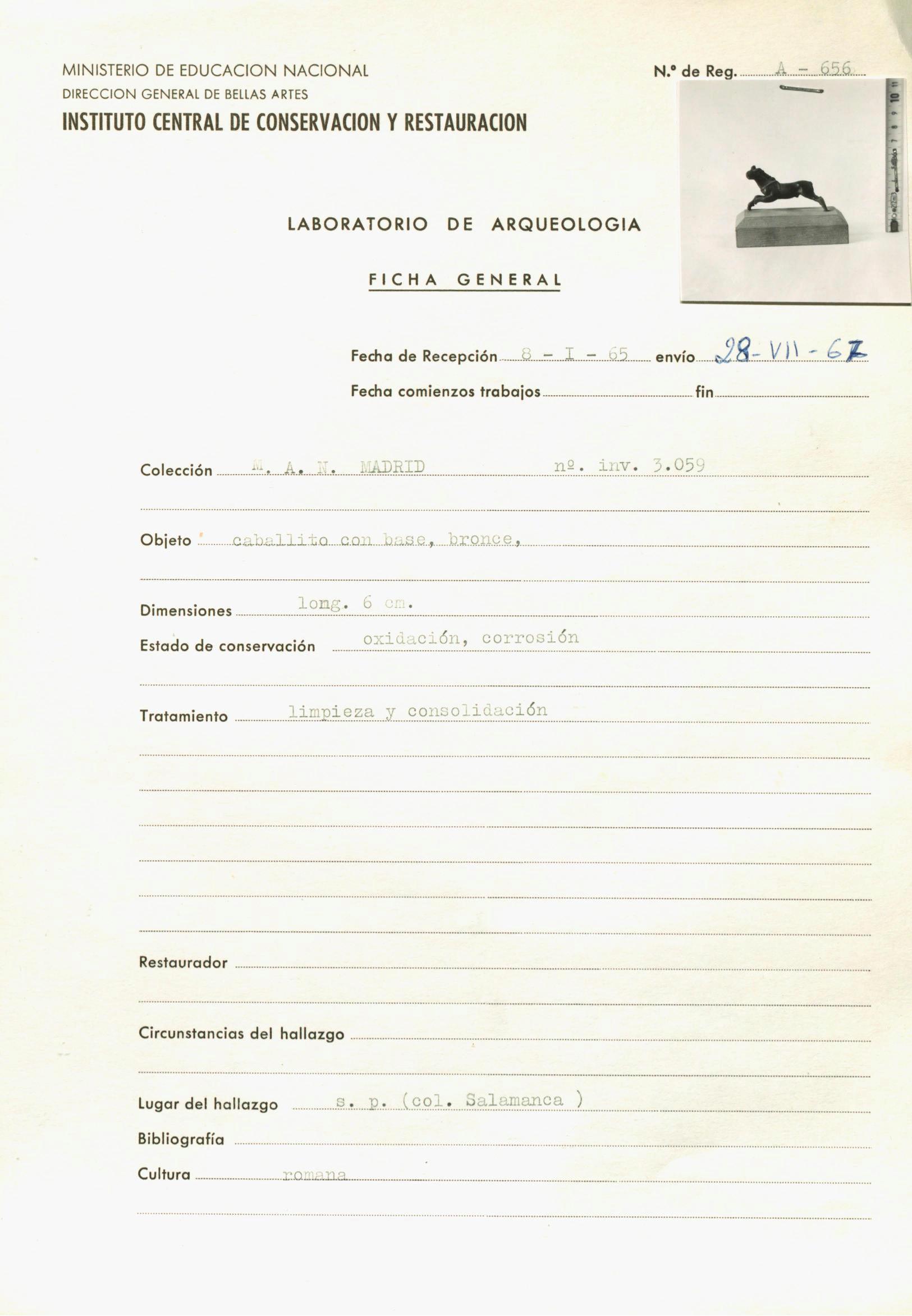 Restauración de una escultura de caballito con base de bronce, de la colección "Salamanca", procedente del Museo Arqueológico Nacional (Madrid)