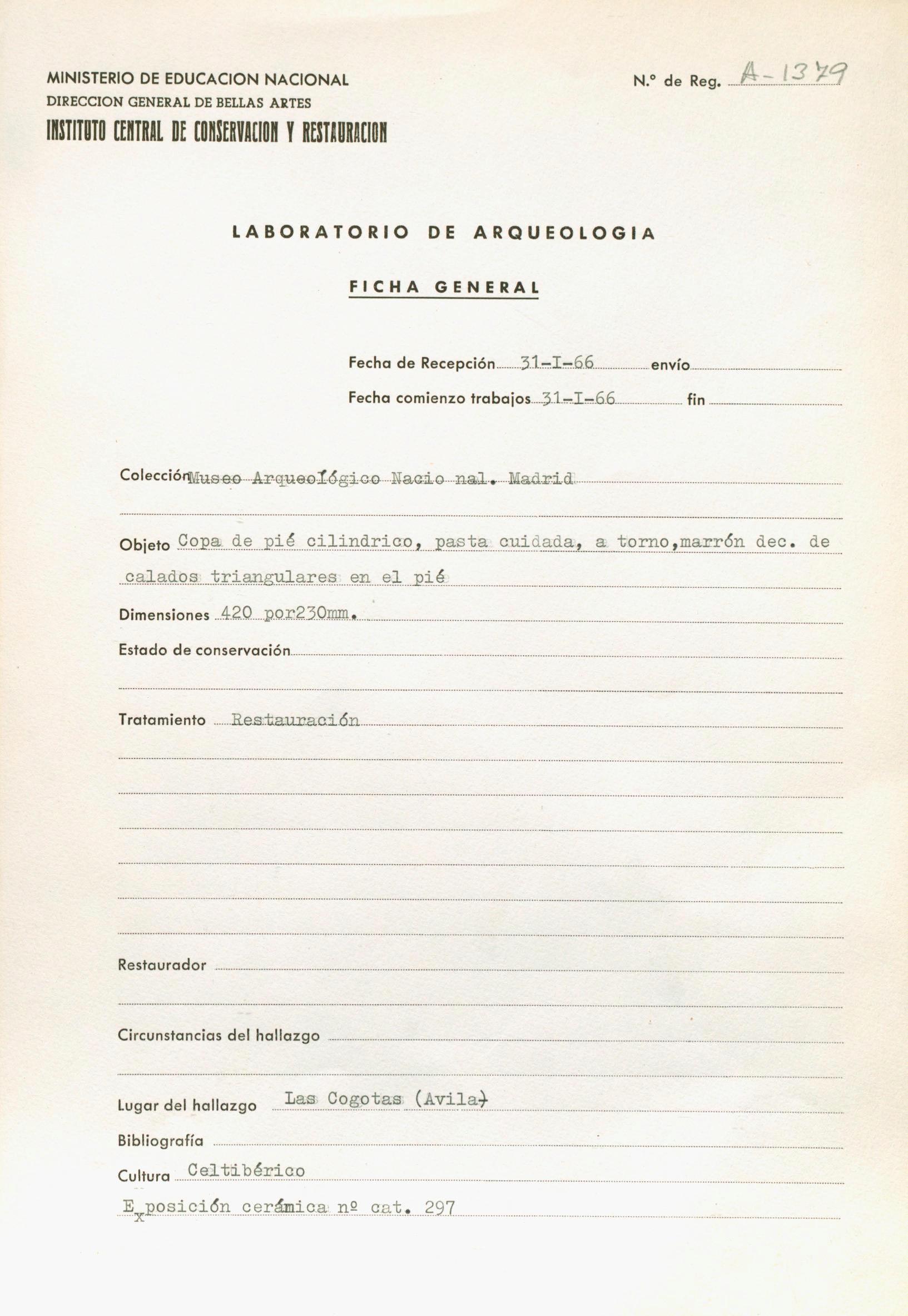 Restauración de una copa celtibérica del yacimiento de las Cogotas (Ávila), procedente del Museo Arqueológico Nacional (Madrid)
