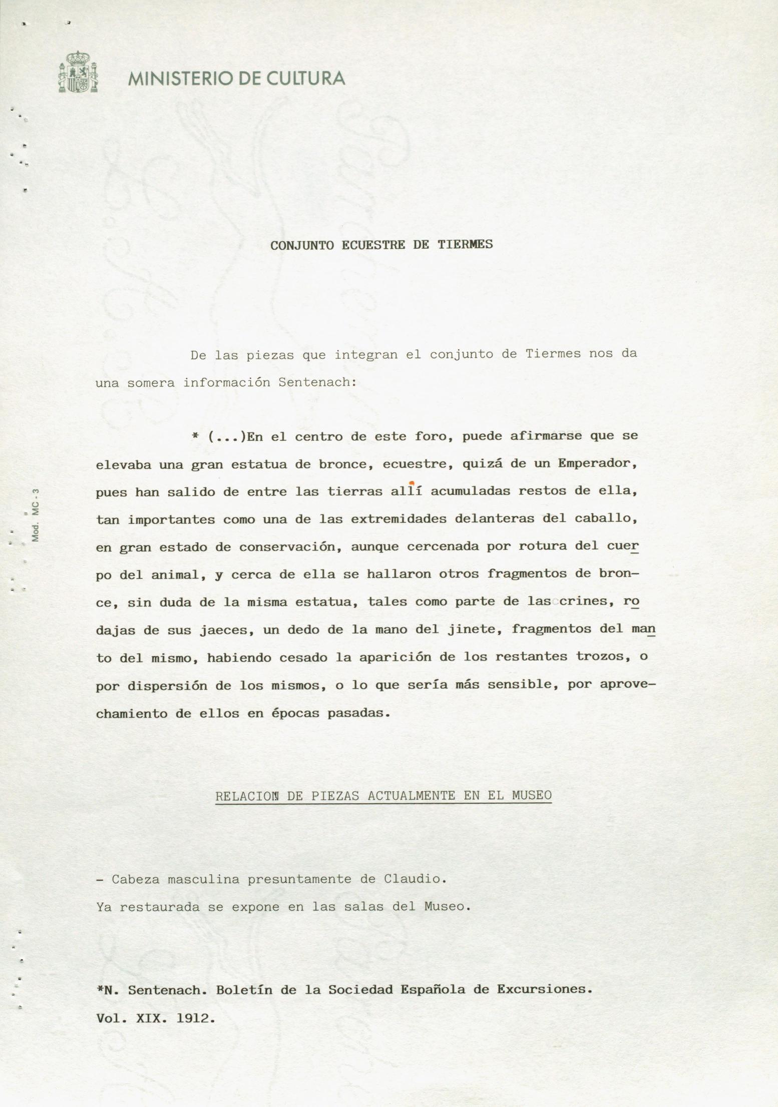 Informe de conservación de un conjunto escultórico ecuestre hallado en el yacimiento de Tiermes, procedente del Museo Arqueológico Nacional (Madrid)