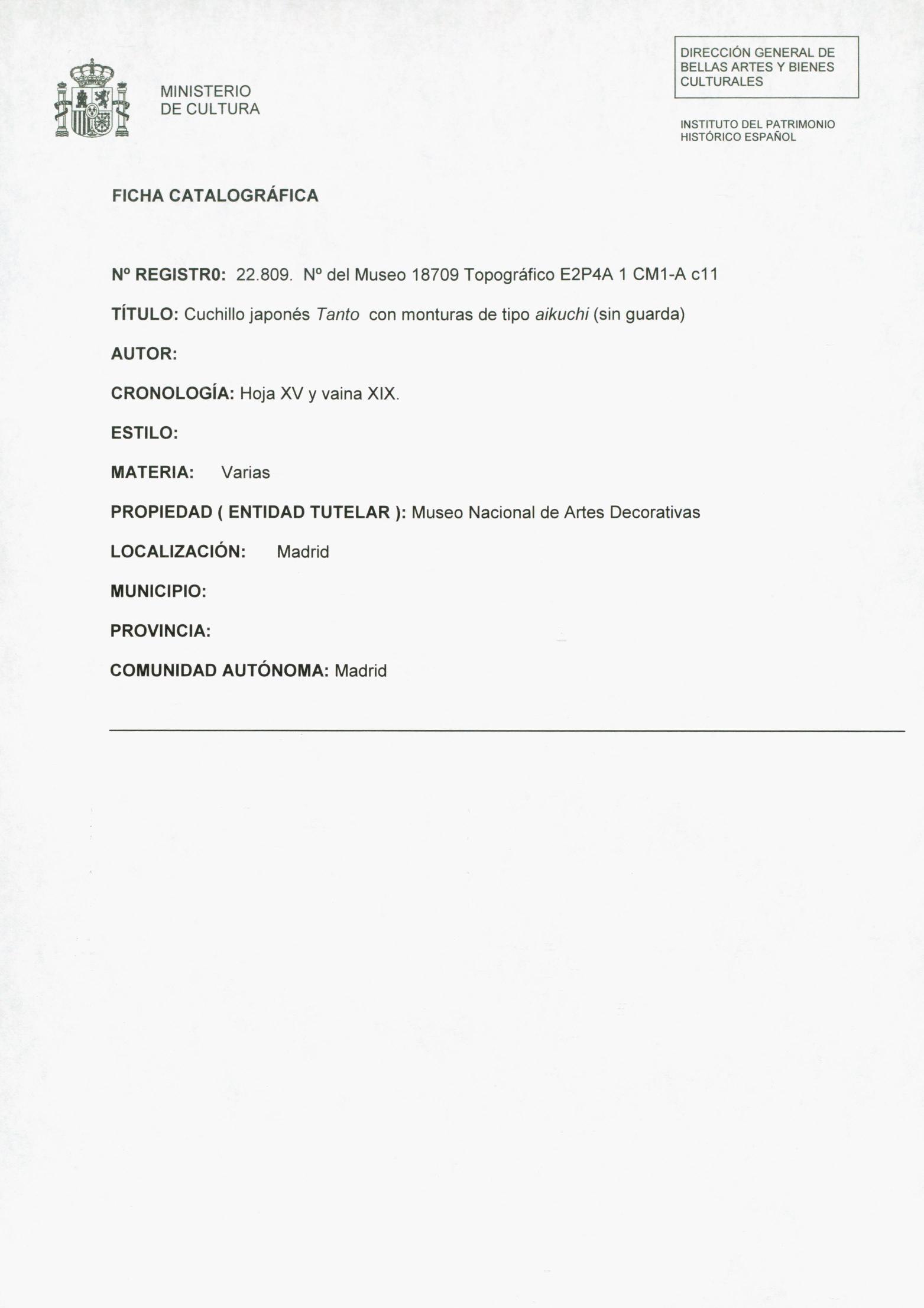 Restauración de un puñal y dos sables japoneses, procedentes del Museo Nacional de Artes Decorativas (Madrid)
