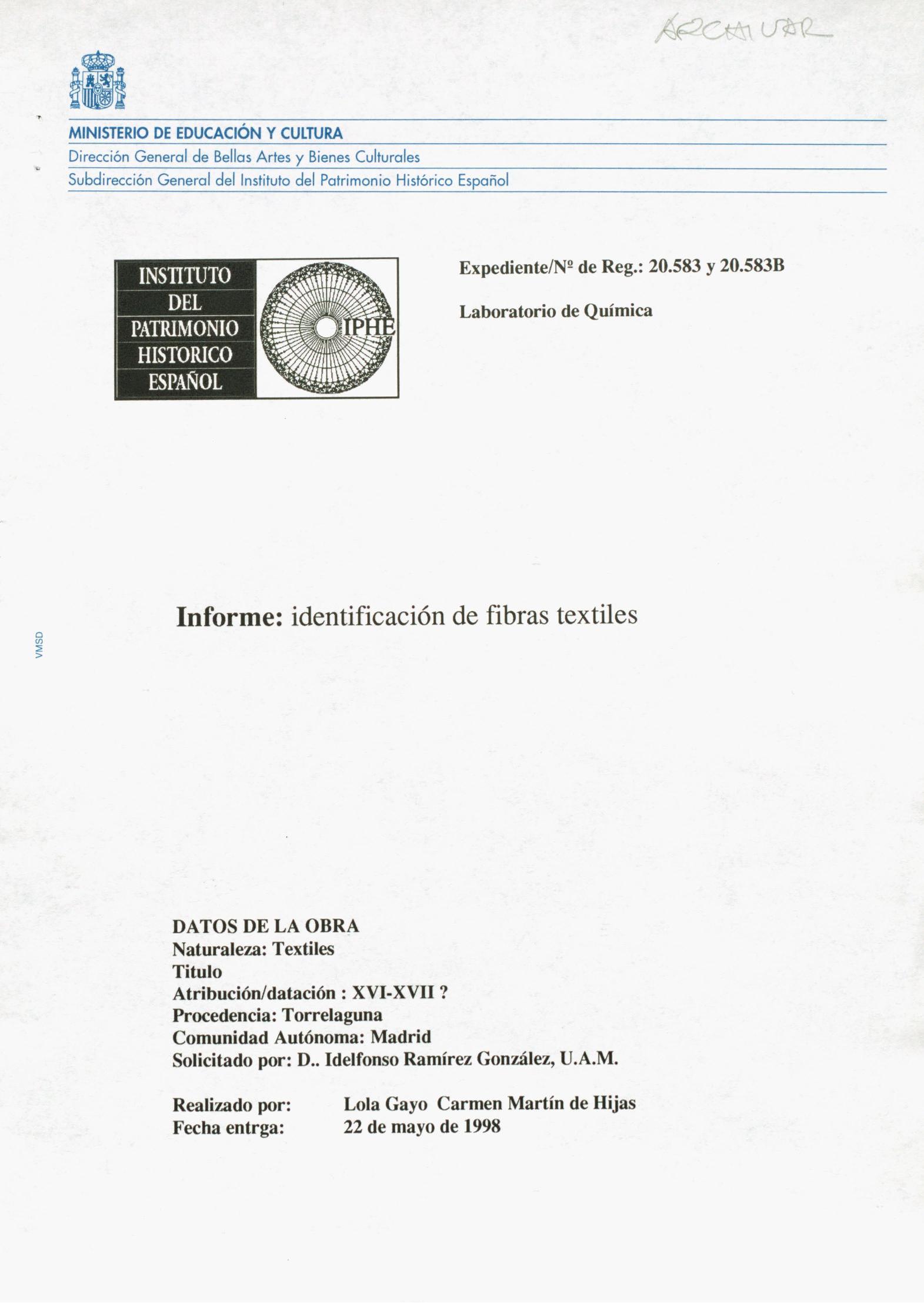 Informe de laboratorio para la identificación de fibras textiles en quince muestras de tejidos procedentes del Hospital de la Santísima Trinidad de Torrelaguna (Madrid)