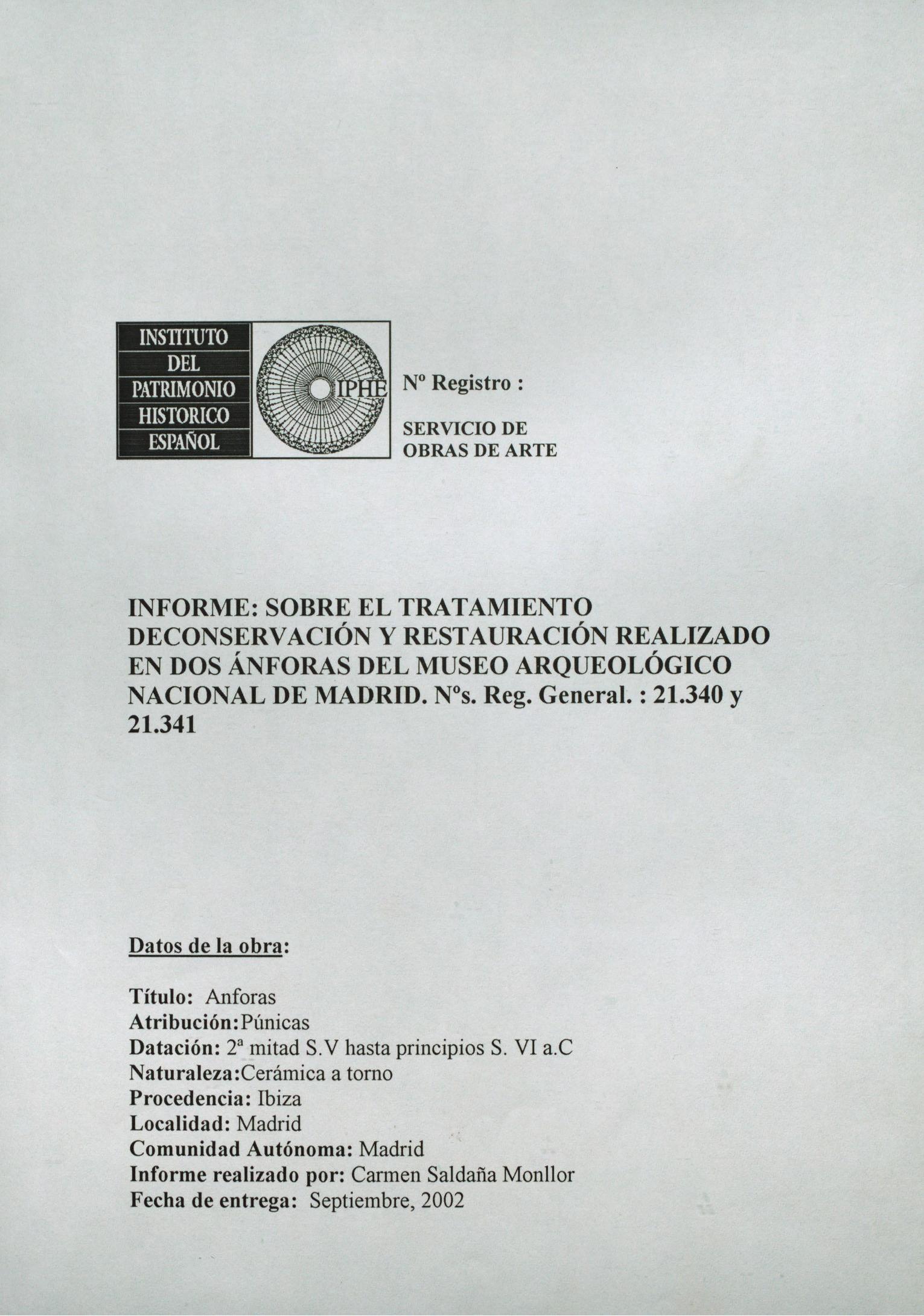 Restauración de dos ánforas romanas procedentes del Museo Arqueológico Nacional (Madrid)