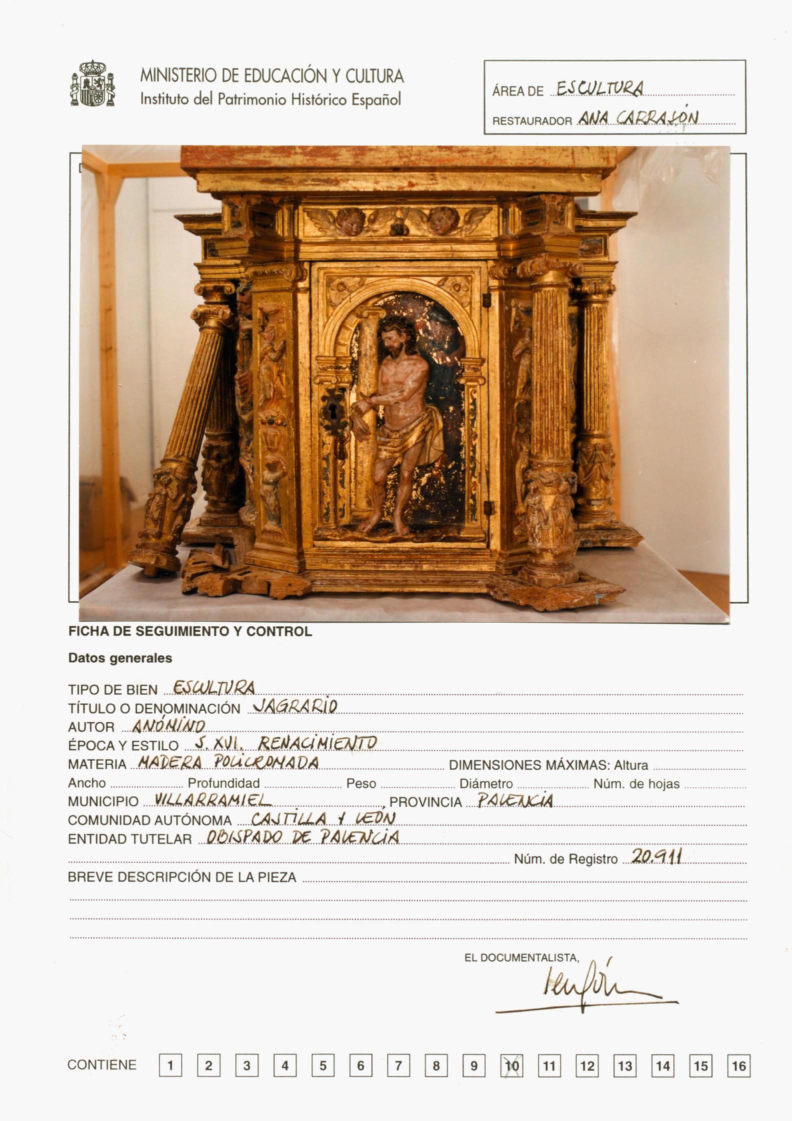 Restauración de un sagrario renacentista de madera policromada, procedente de la Iglesia parroquial de Santa María de Villarramiel (Palencia)