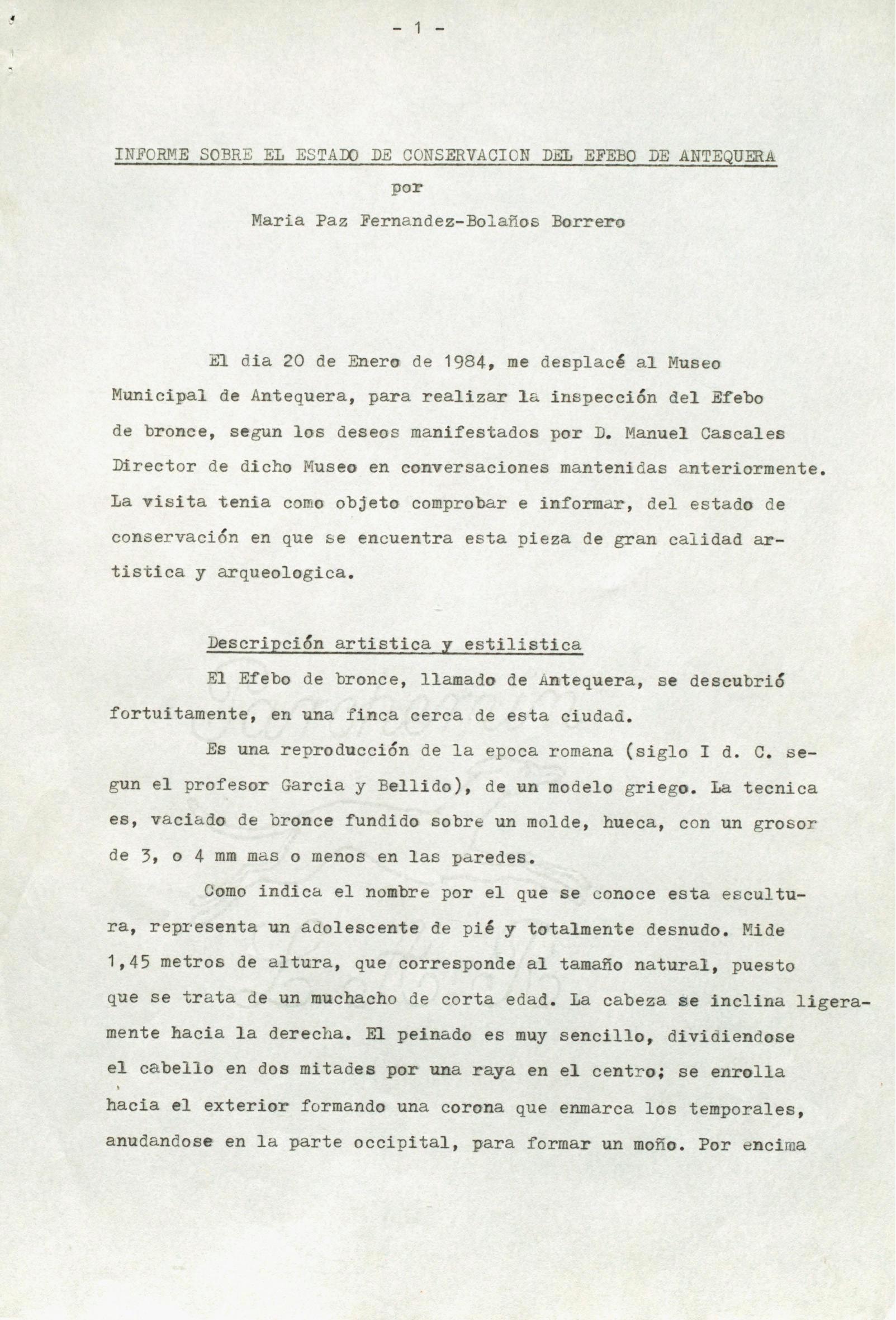 Restauración de la figura de bronce romano "Efebo de Antequera" o "Mellefebo", del siglo I, procedente del Museo Municipal de Antequera (Málaga)