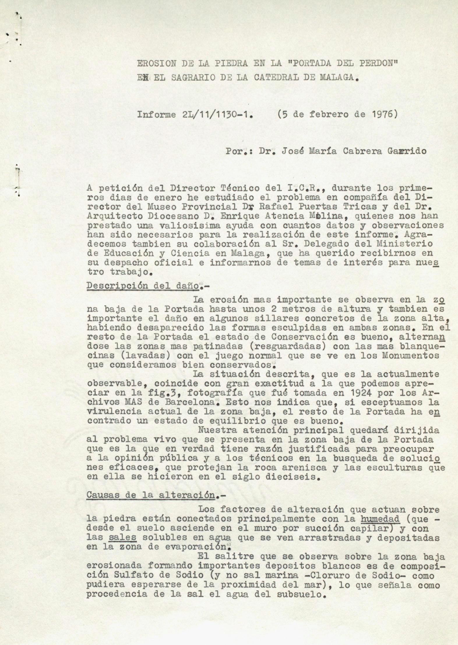 Informes de conservación de la Portada del Perdón del Sagrario de la Catedral de Málaga