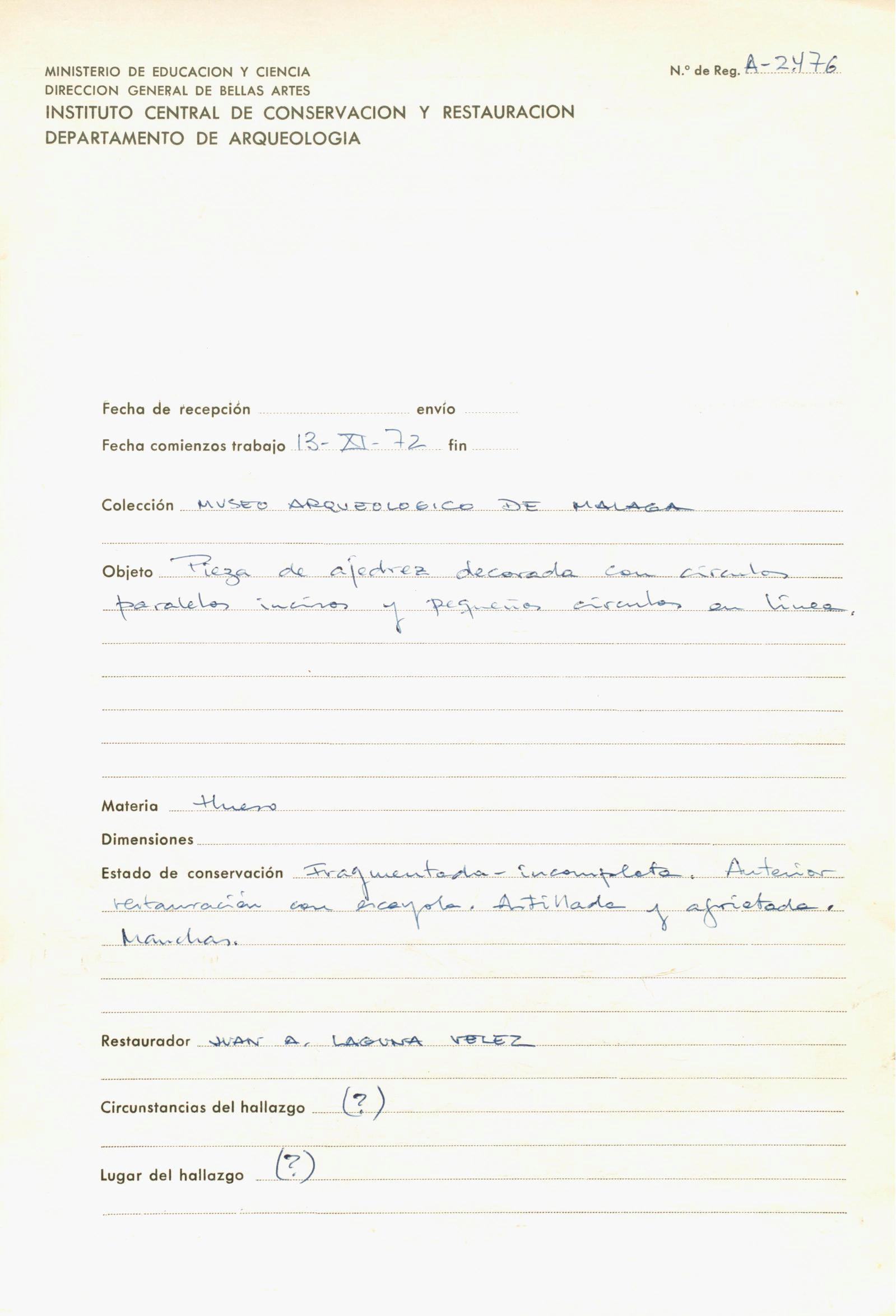 Restauración de objetos de hueso, marfil y alabastro, procedentes del Museo Arqueológico de Málaga