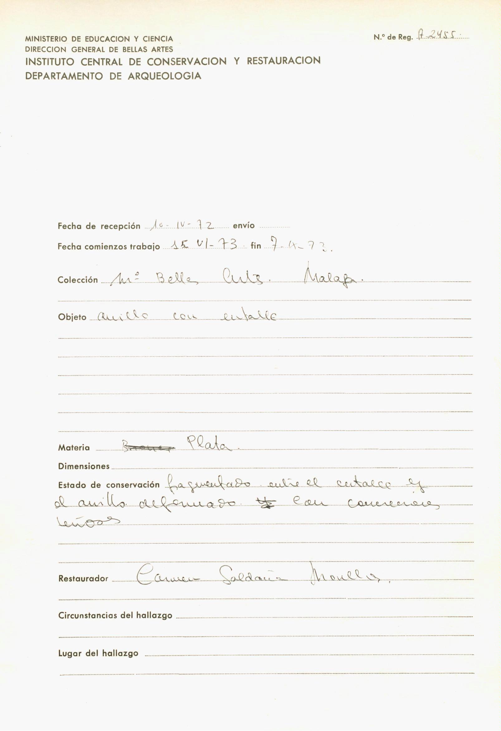 Restauración de un anillo con entalle de plata, procedente del Museo de Bellas Artes de Málaga