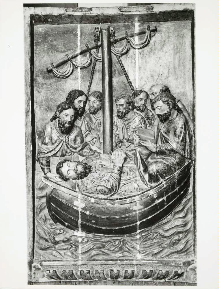 Restauración del relieve "Traslado por mar del Apóstol", procedente de la Iglesia de Santiago Apóstol en Jumilla (Murcia)