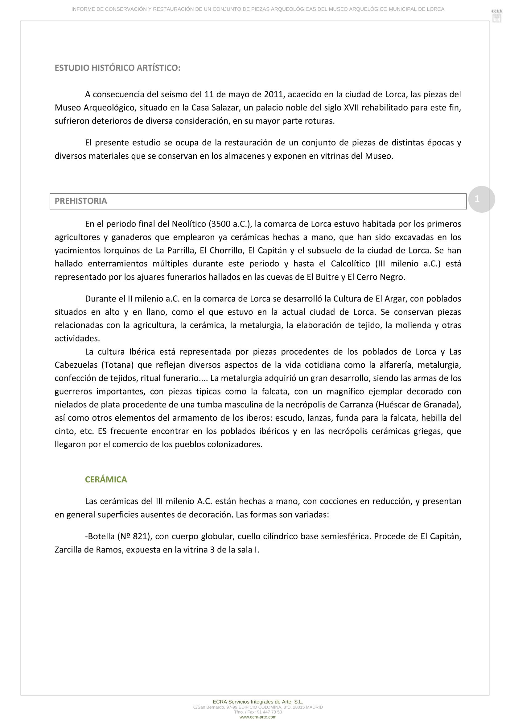 Restauración de un conjunto de piezas arqueológicas del Museo Municipal de Lorca afectadas por el seismo (Murcia)