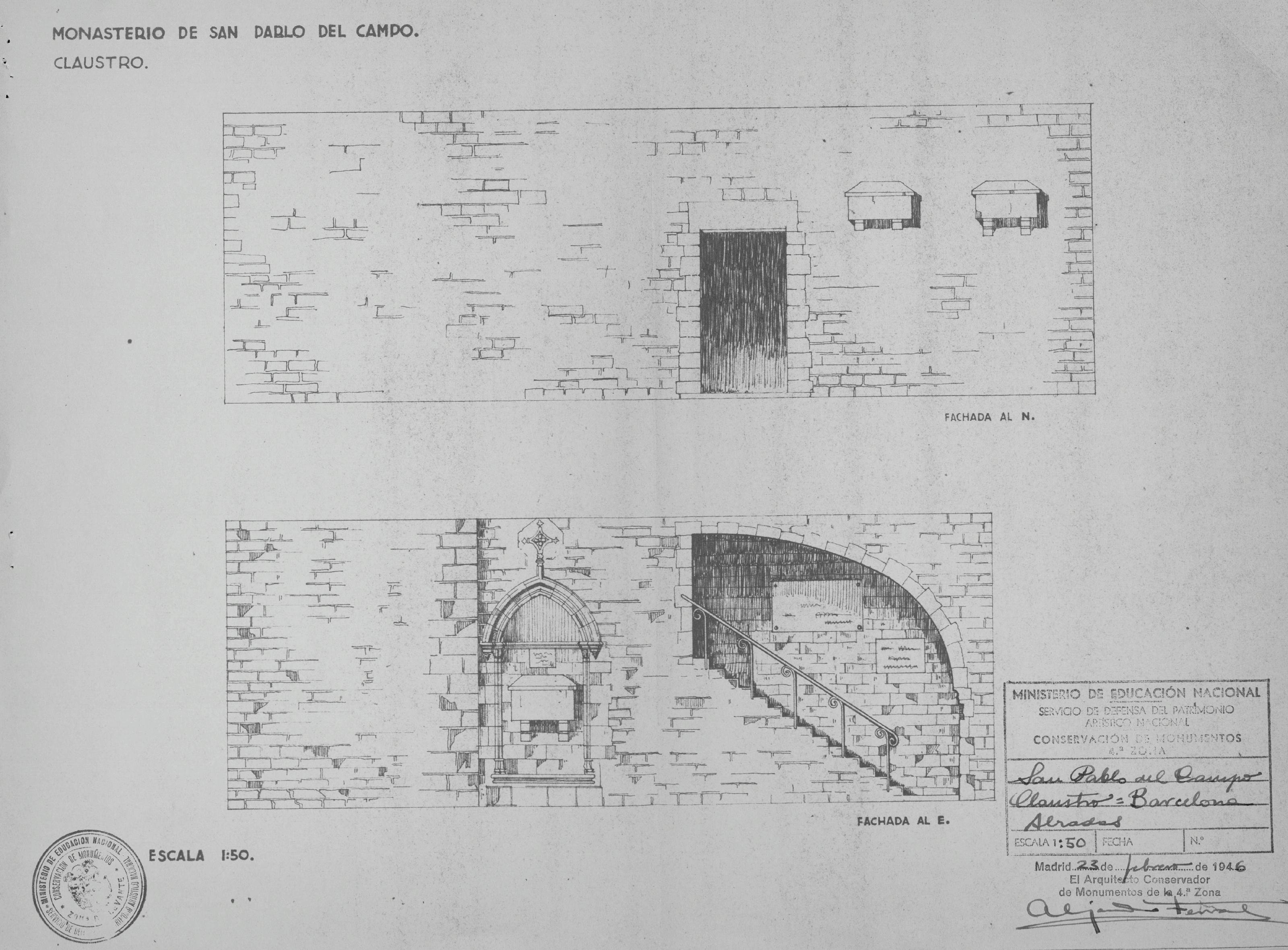 CONSOLIDACION Y RECONSTRUCCION DE LA CUBIERTA DEL CLAUTRO DE LA IGLESIA DE SAN PABLO DEL CAMPO: FACHADA AL NORTE Y FACHADA AL ESTE