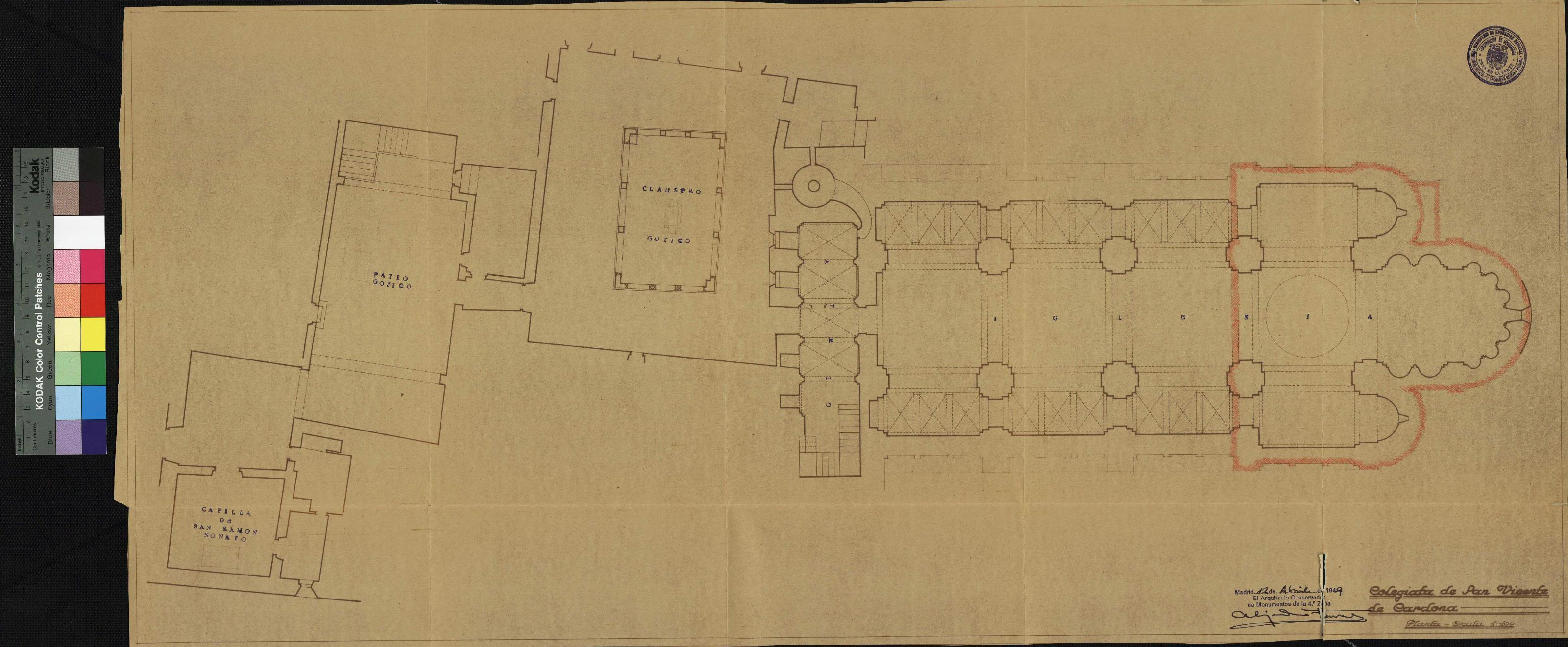 OBRAS DE CONSERVACION EN LA COLEGIATA DE SAN VICENTE: PLANTA. MARCANDO LAS ABSIDES