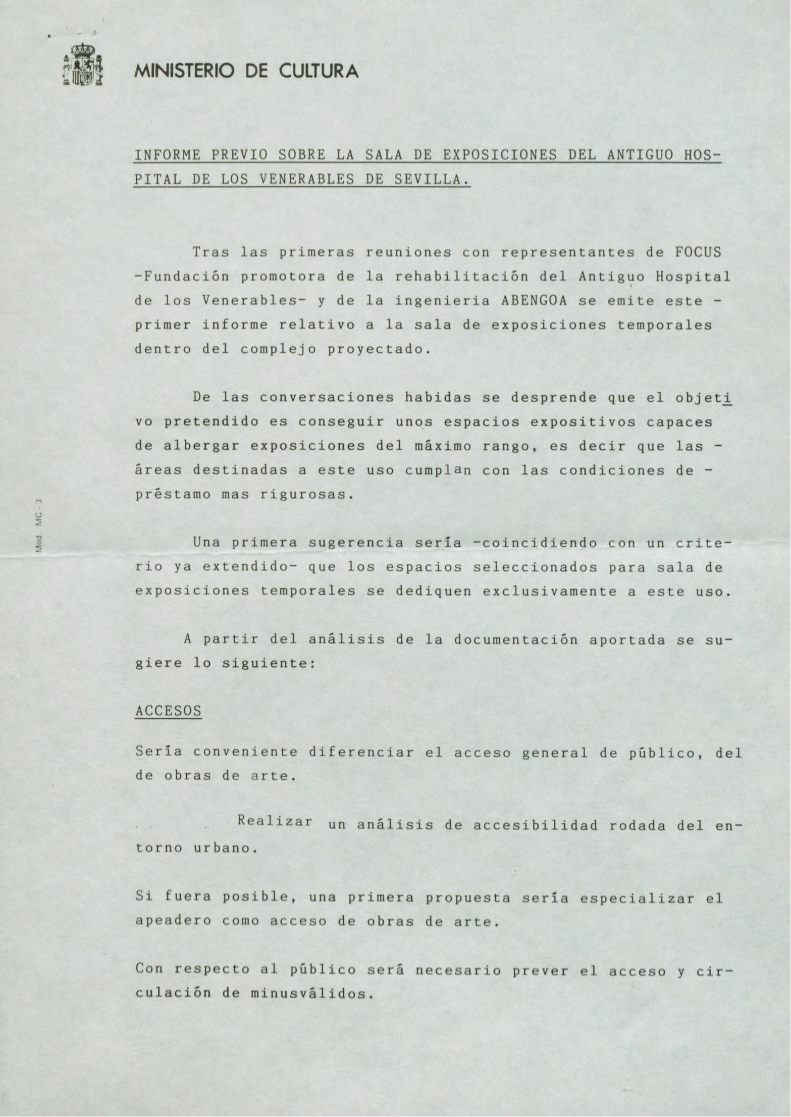 Informe de la sala de exposiciones del Hospital de los Venerables Sacerdotes (Sevilla)