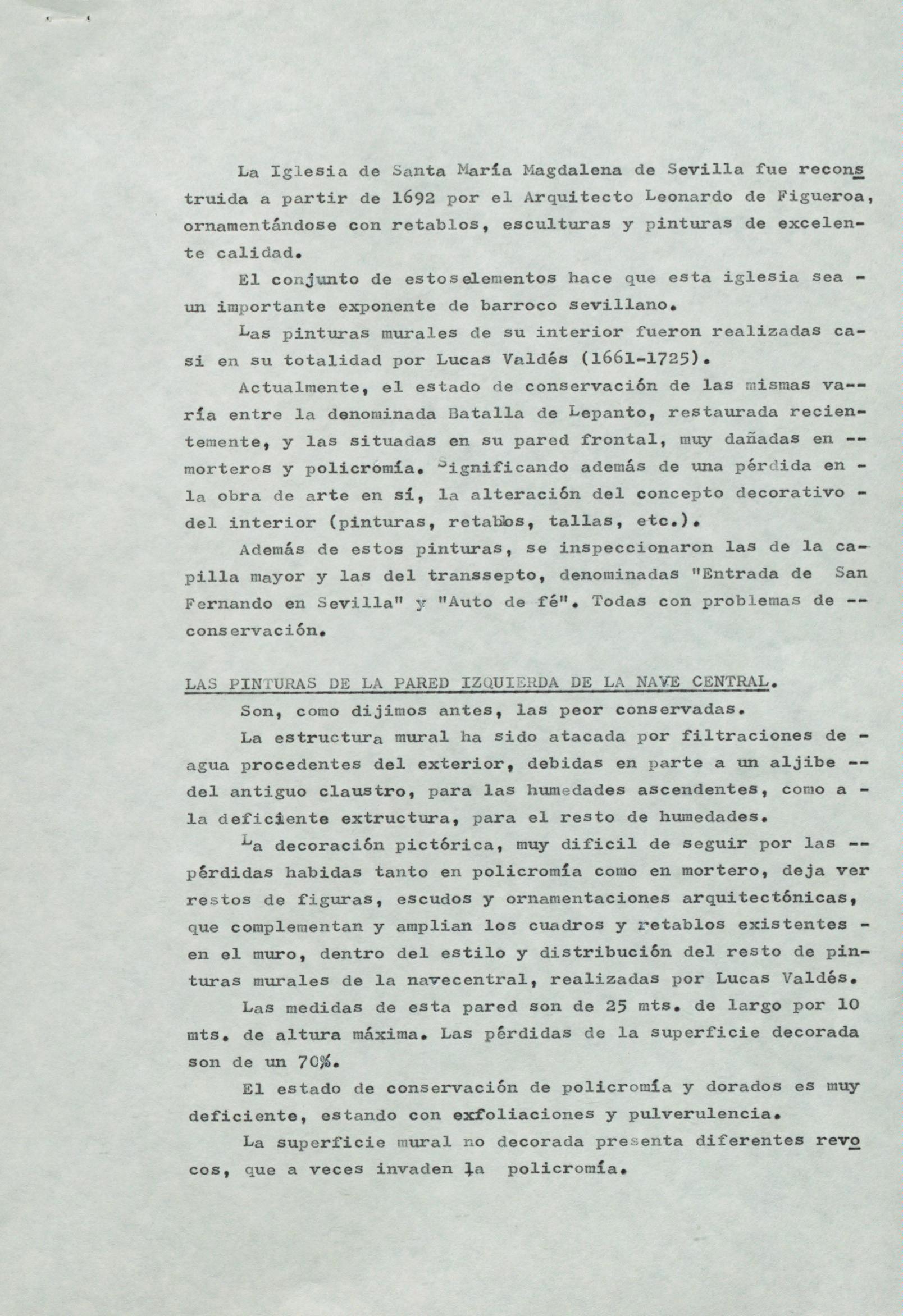 Informe de conservación de las pinturas murales de la Iglesia de Santa María Magdalena de Sevilla